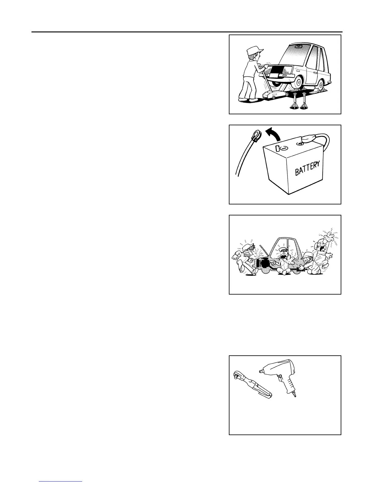 • When repairing the fuel, oil, water, vacuum or exhaust systems,