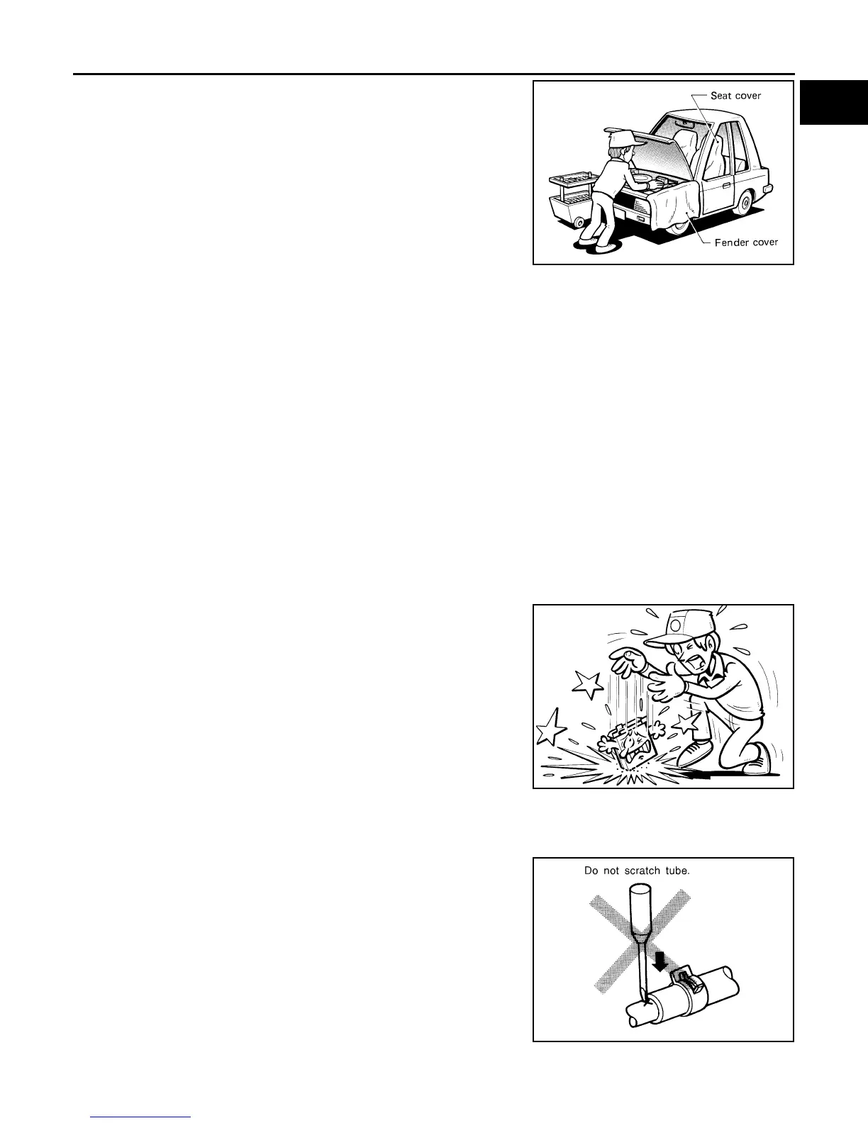 • When checking for ignition spark or measuring engine compression, make tests quickly and only when nec-