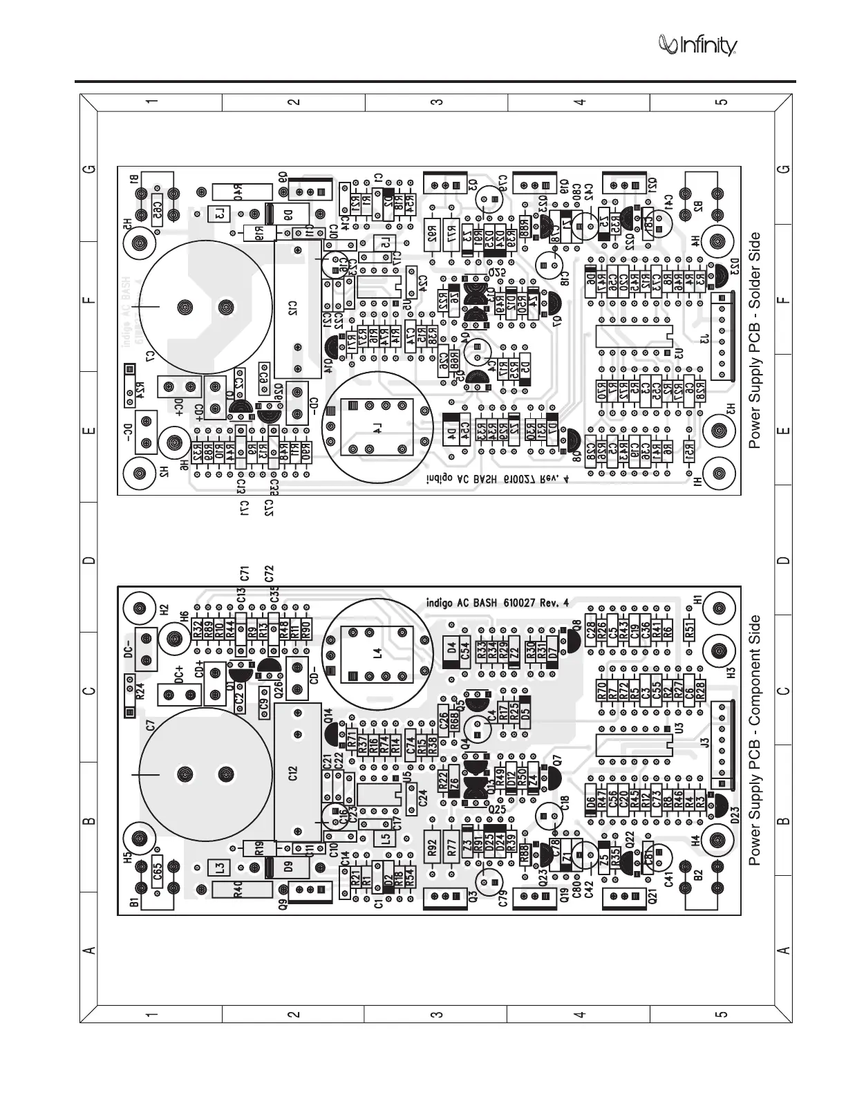 Infinity HPS250 - Printed Circuit Board - Power Supply; Power Supply PCB Component Side Layout; Power Supply PCB Solder Side Layout
