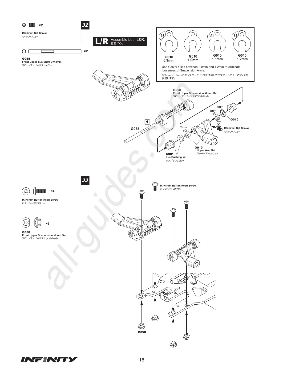 0.9mm~1.2mmのキャスタークリップを使用してサスアームのクリアランスを