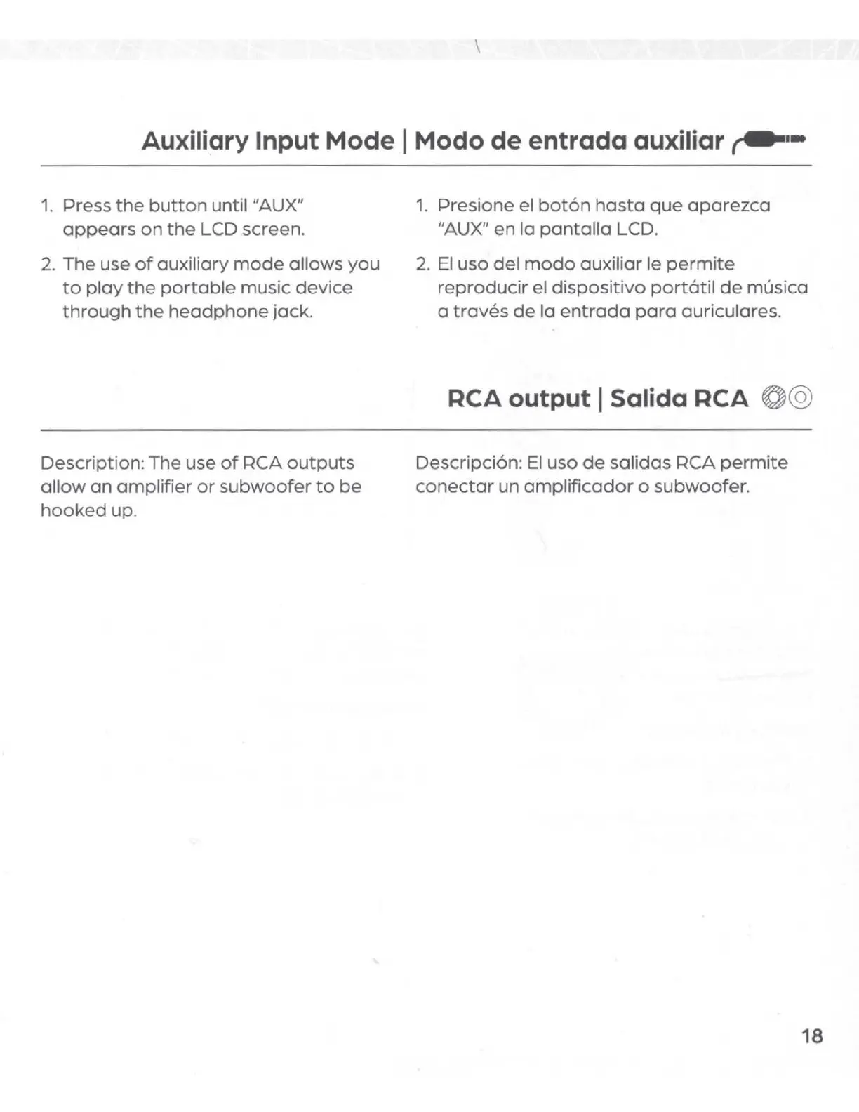 RCA output I Salida RCA