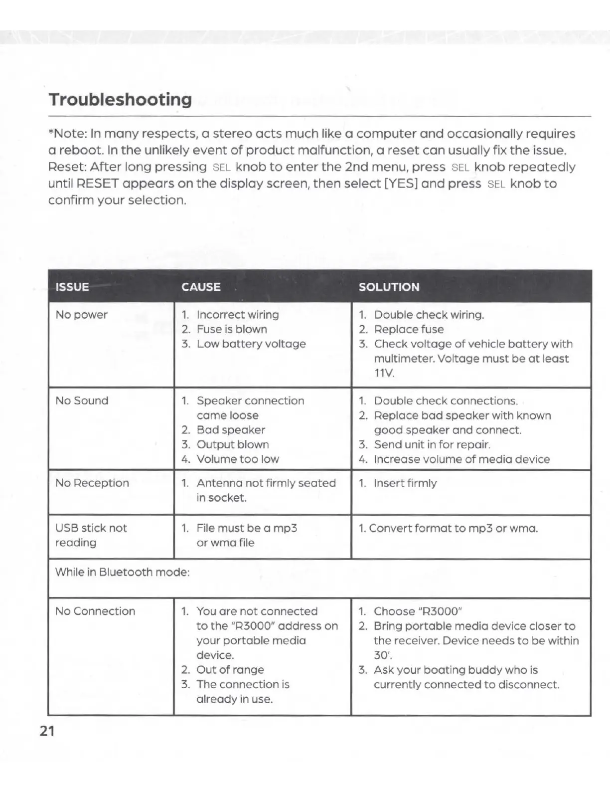 Infinity INF-R3000 - Wiring; Troubleshooting