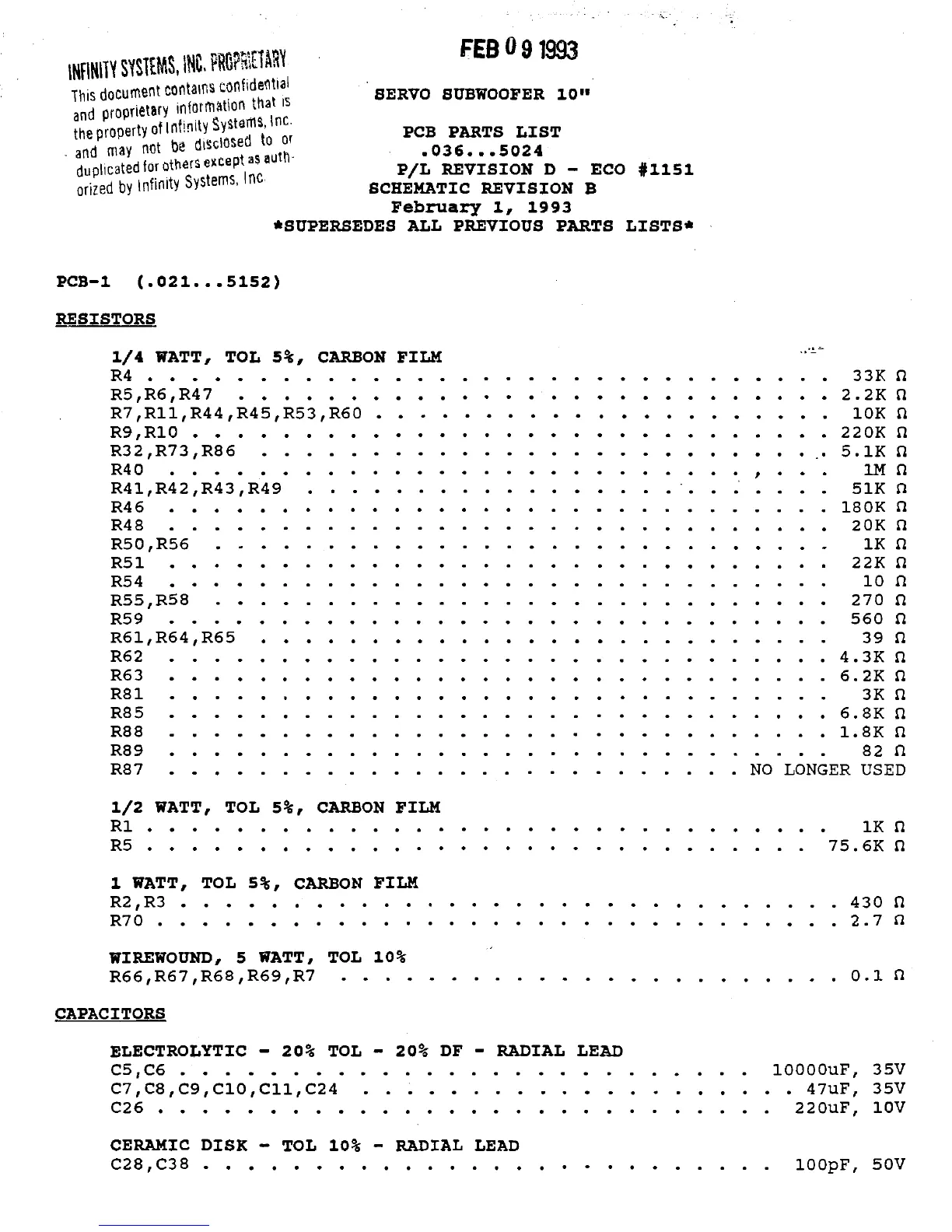 Infinity Infinitesimal IV - PCB Parts List