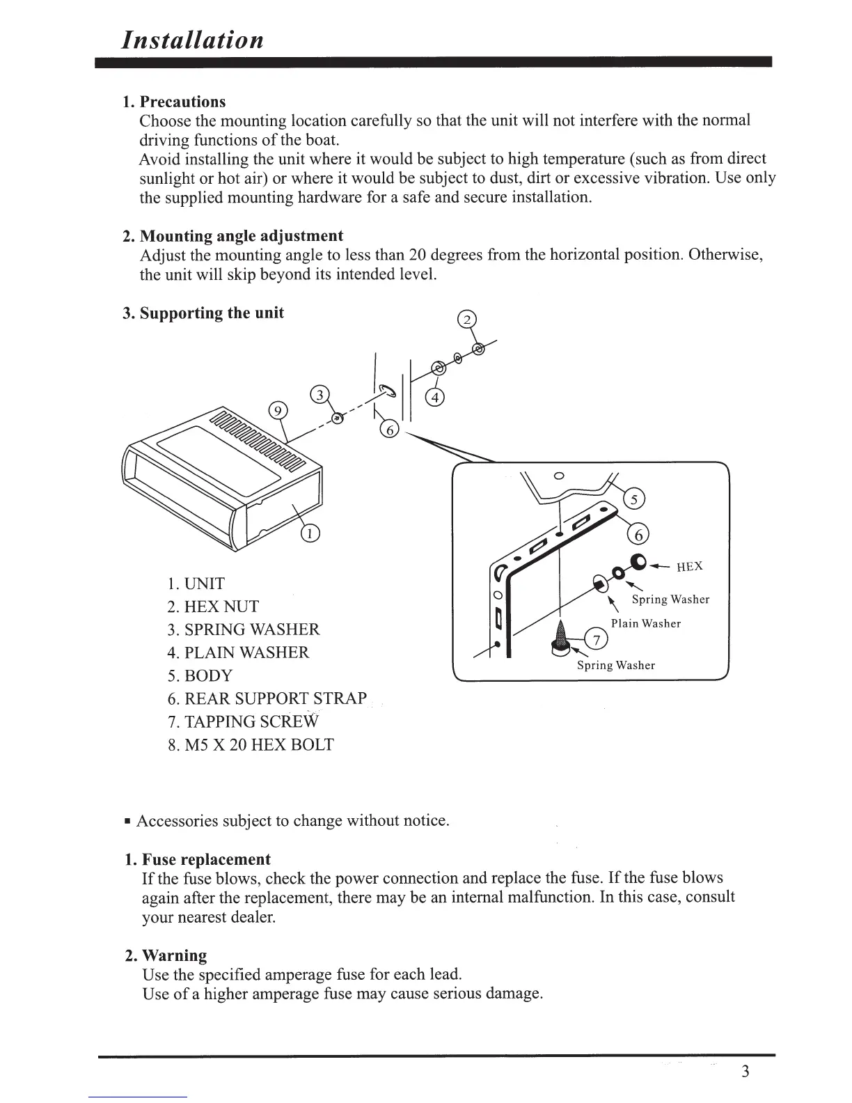 Choose the mounting location carefully so that the unit will not interfere with the normal