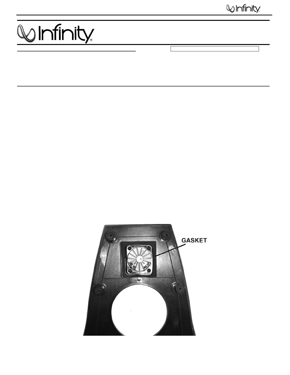 5) Apply a new rectangular gasket, Infinity part# 336050-003, on top of the present gasket,
