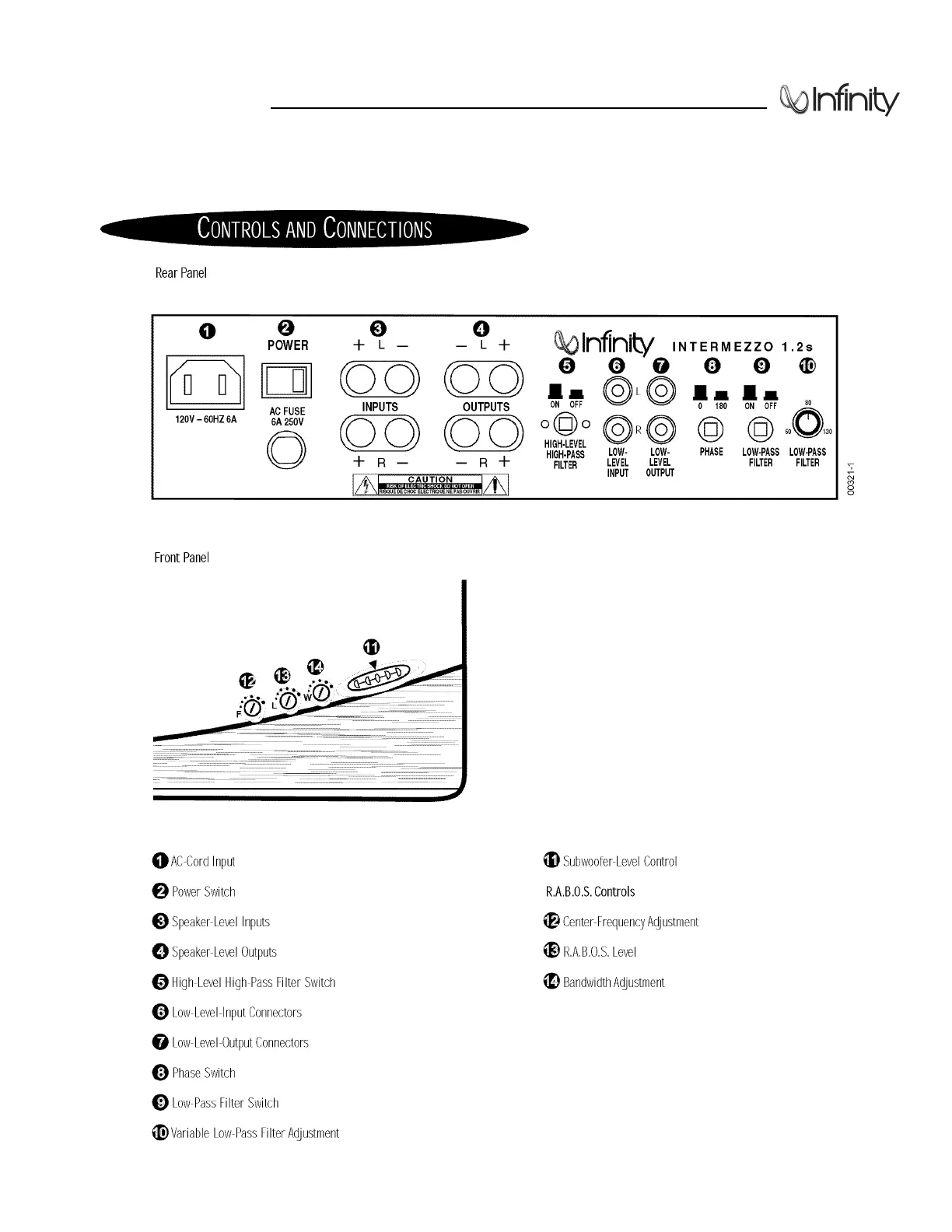 Infinity INTERMEZZO 1.2s - CONTROLS and CONNECTIONS