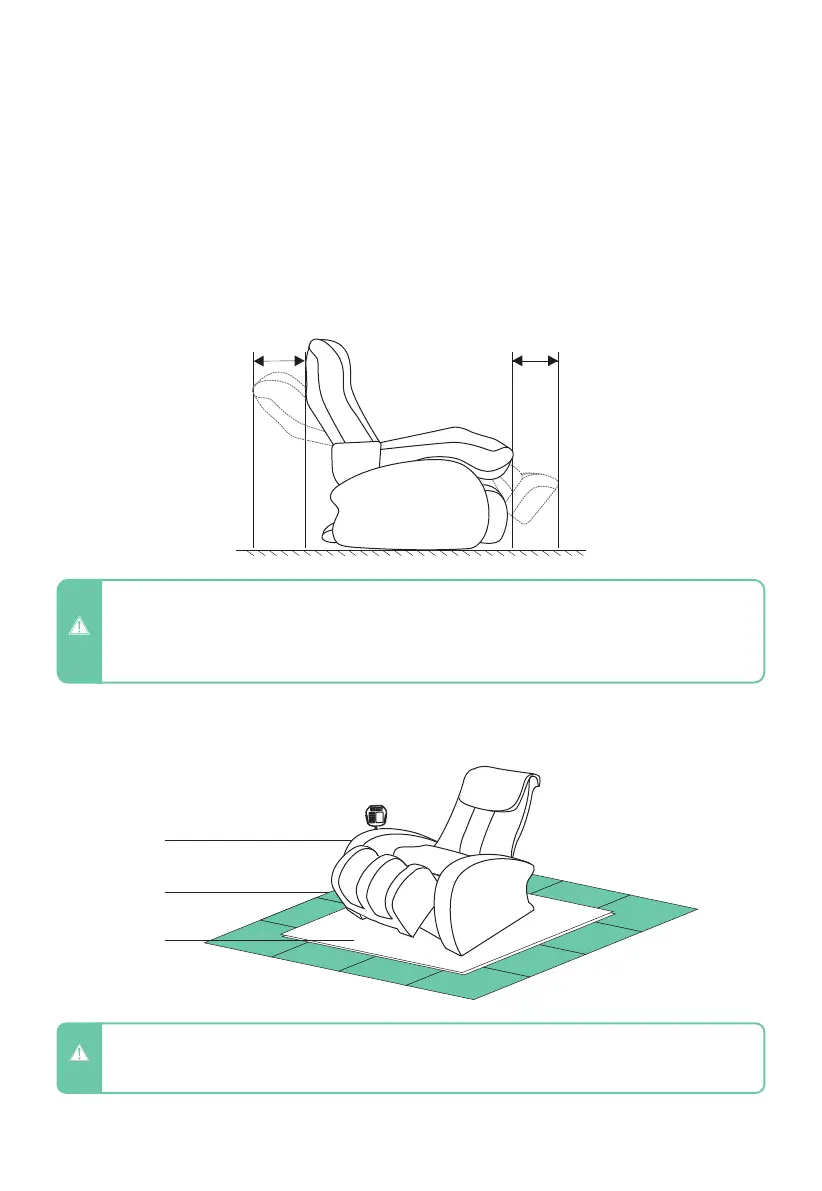 - Please keep the massage chair away from heated surfaces to prevent fire hazard or damage to the product.