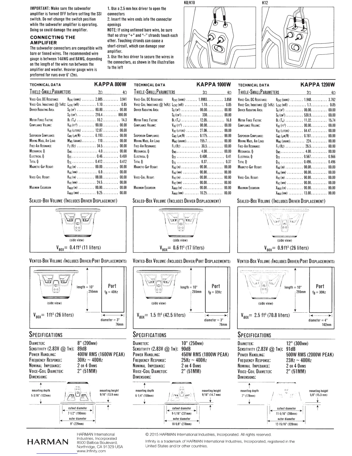Infinity KAPPA 1200w - Technical Data and Specifications; KAPPA 800 W Technical Data; KAPPA 1000 W Technical Data; KAPPA 1200 W Technical Data