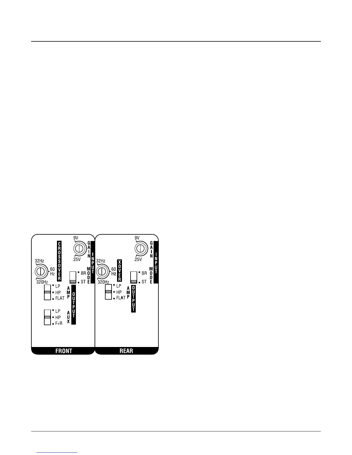 1. Set the front and rear CROSSOVER controls to the