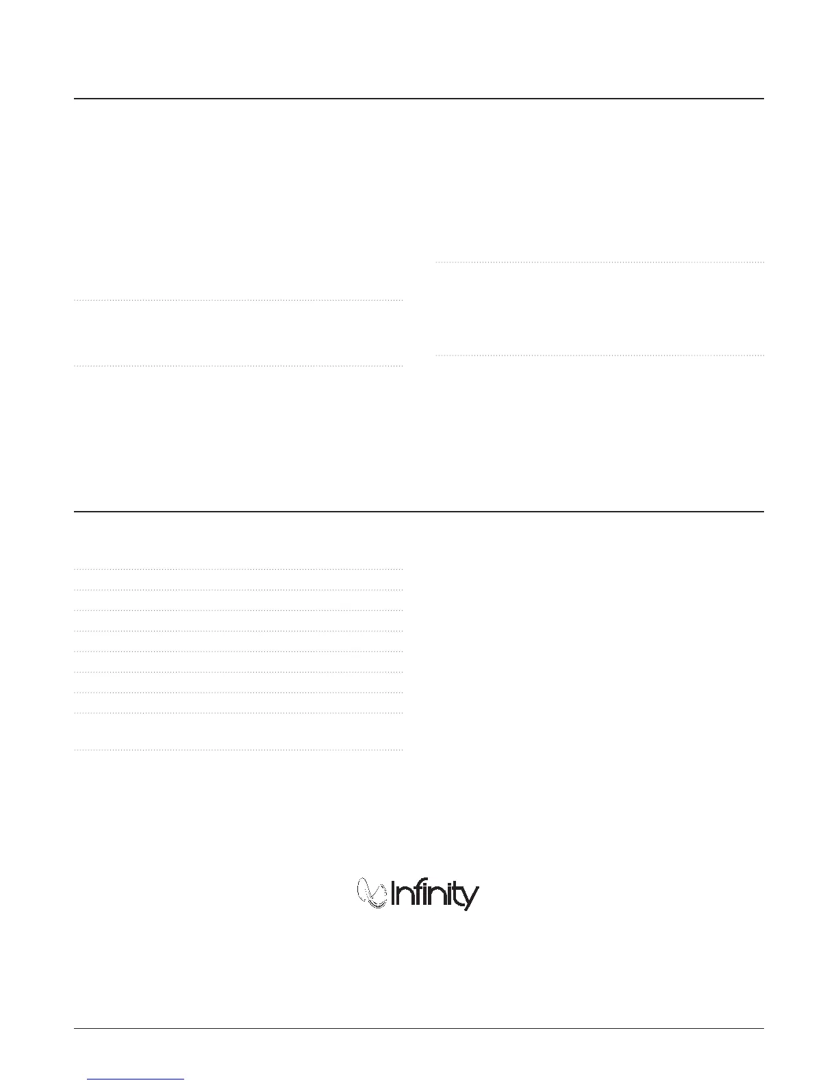 Infinity constantly strives to update and improve existing products, as well as create new ones; therefore, the specifications and construction details in this and related Infinity