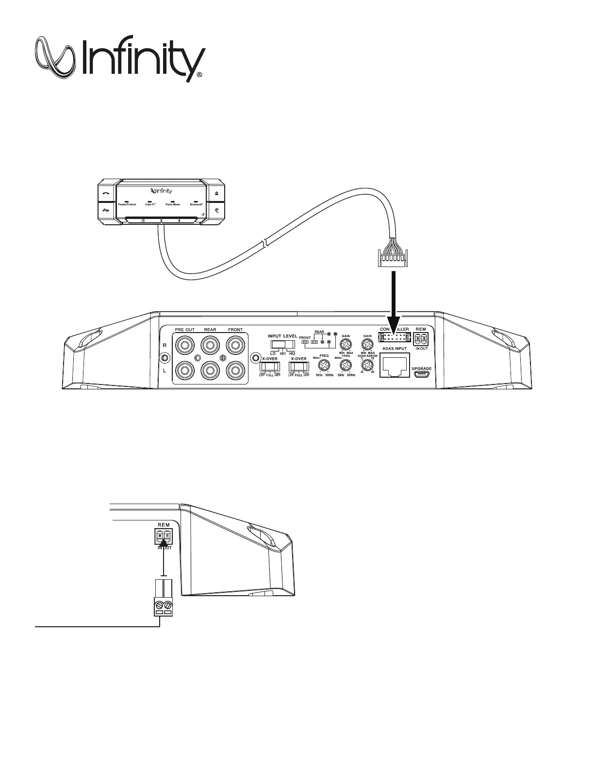 illustration below). The REM lead detects signal and instructs the amplifier to turn on/off.