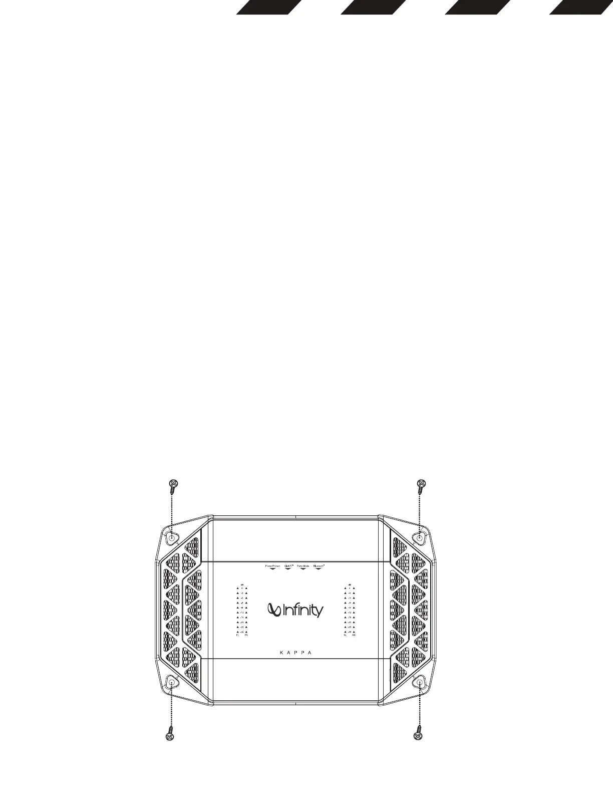 • Attach the amplifier to the mounting surface with four appropriate mounting screws.