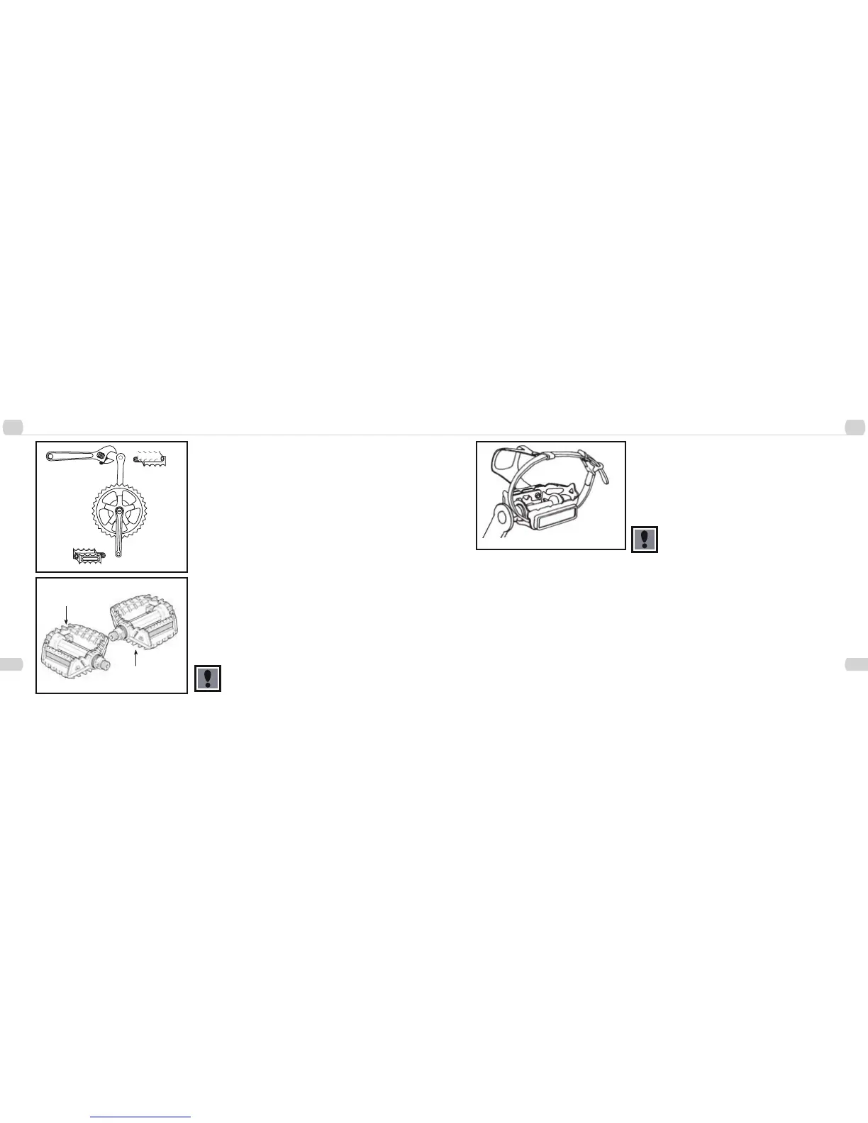 Note: The right and left pedals of a bicycle each have a different thread and are not interchangeable.