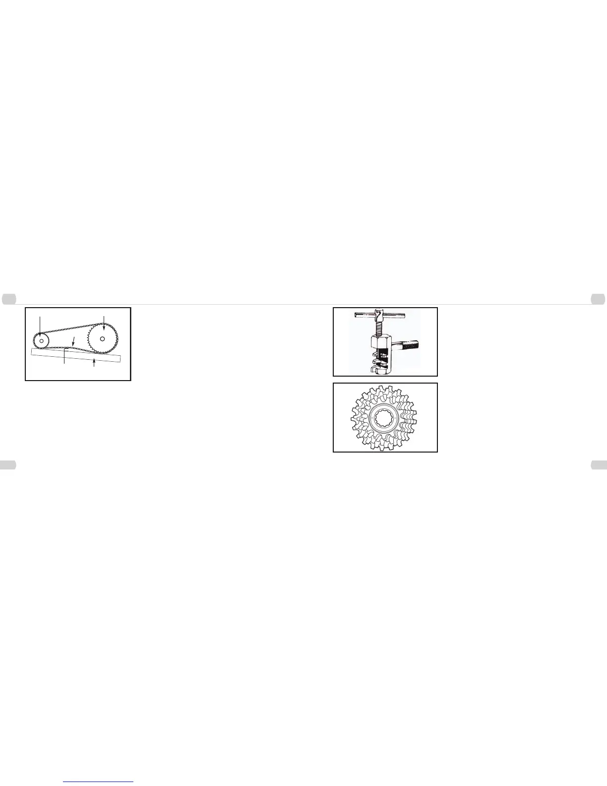chainwheel and rear sprocket. Center the wheel in the frame and re-tighten the axle nuts after any adjustment. Bicycle that have a