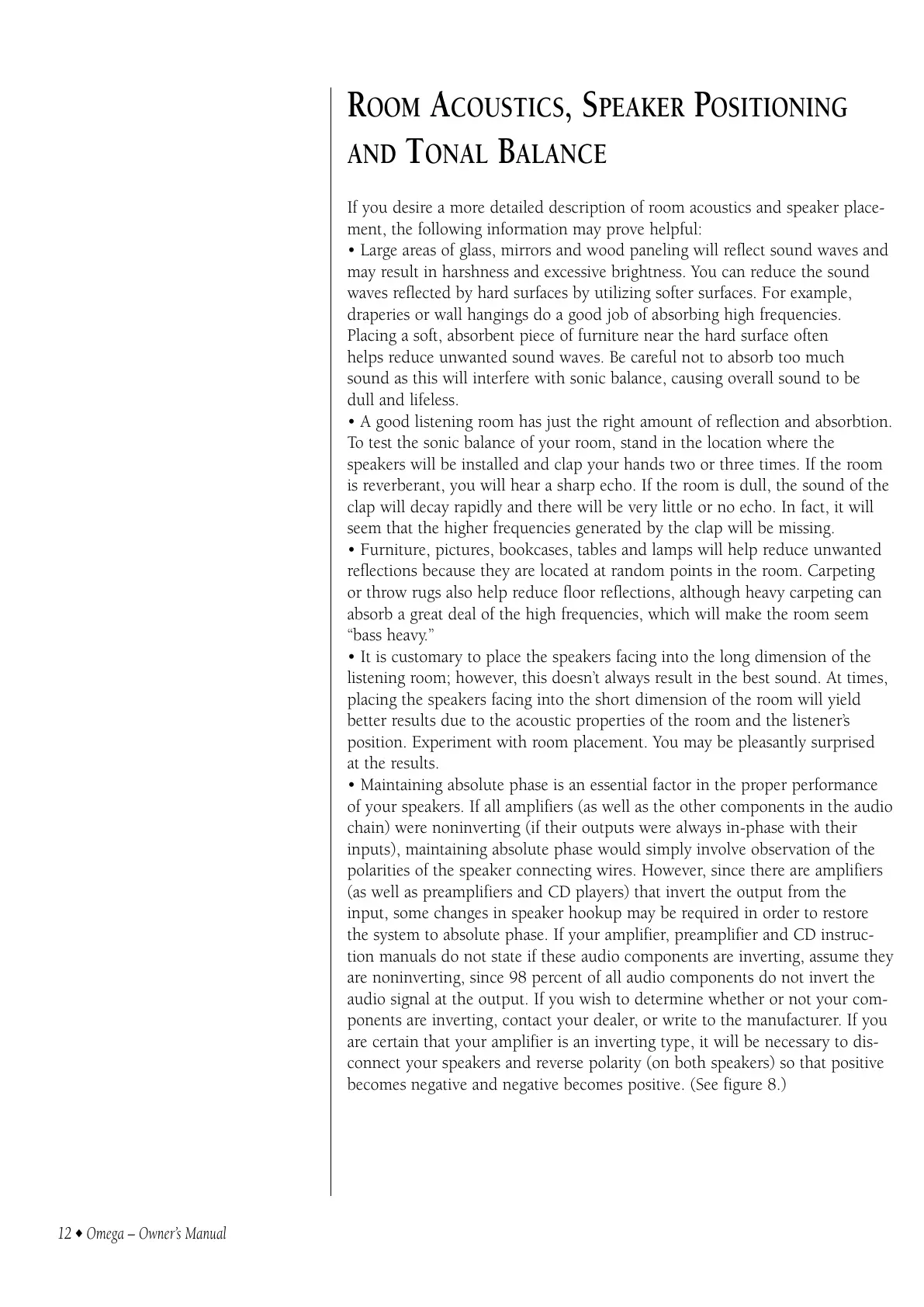 If you desire a more detailed description of room acoustics and speaker place-