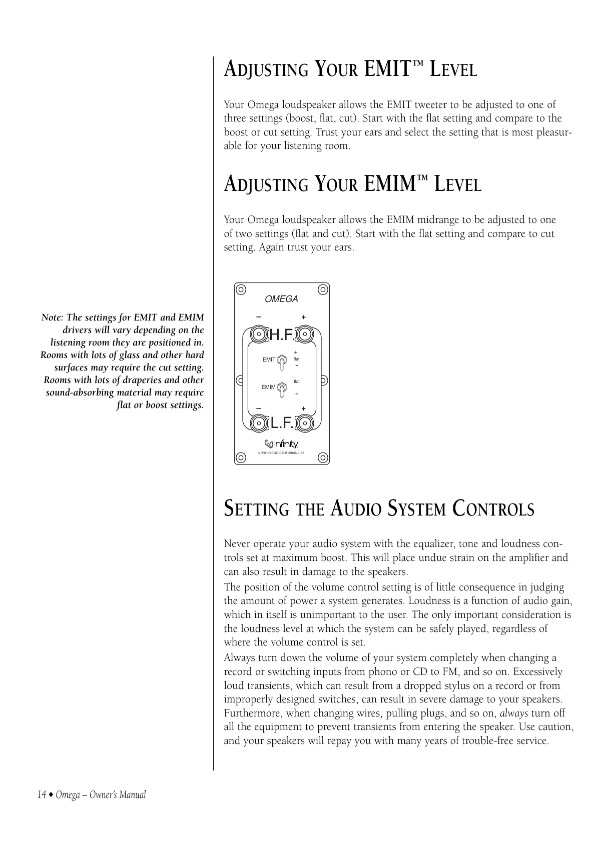 Your Omega loudspeaker allows the EMIM midrange to be adjusted to one