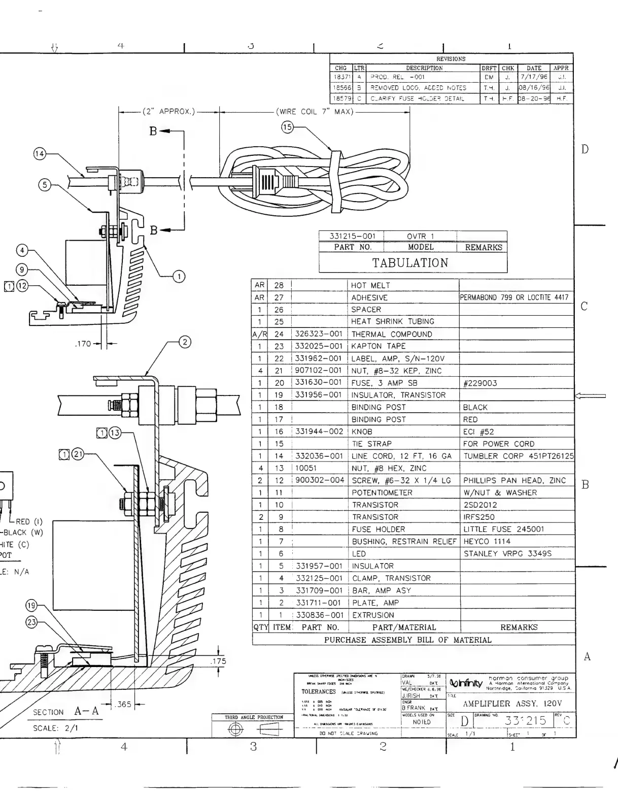 Infinity Overture 1 - 120 V Electrical Parts List (Semiconductors & Capacitors)