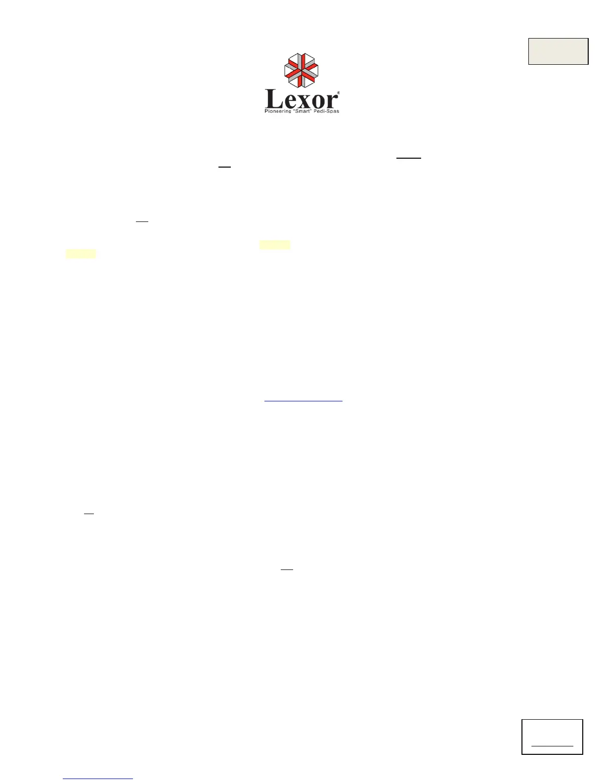 of the problem. Contact Lexor’s Customer Care Department to report defects or if you have questions on warranty prior to the expiration date of warranty at: