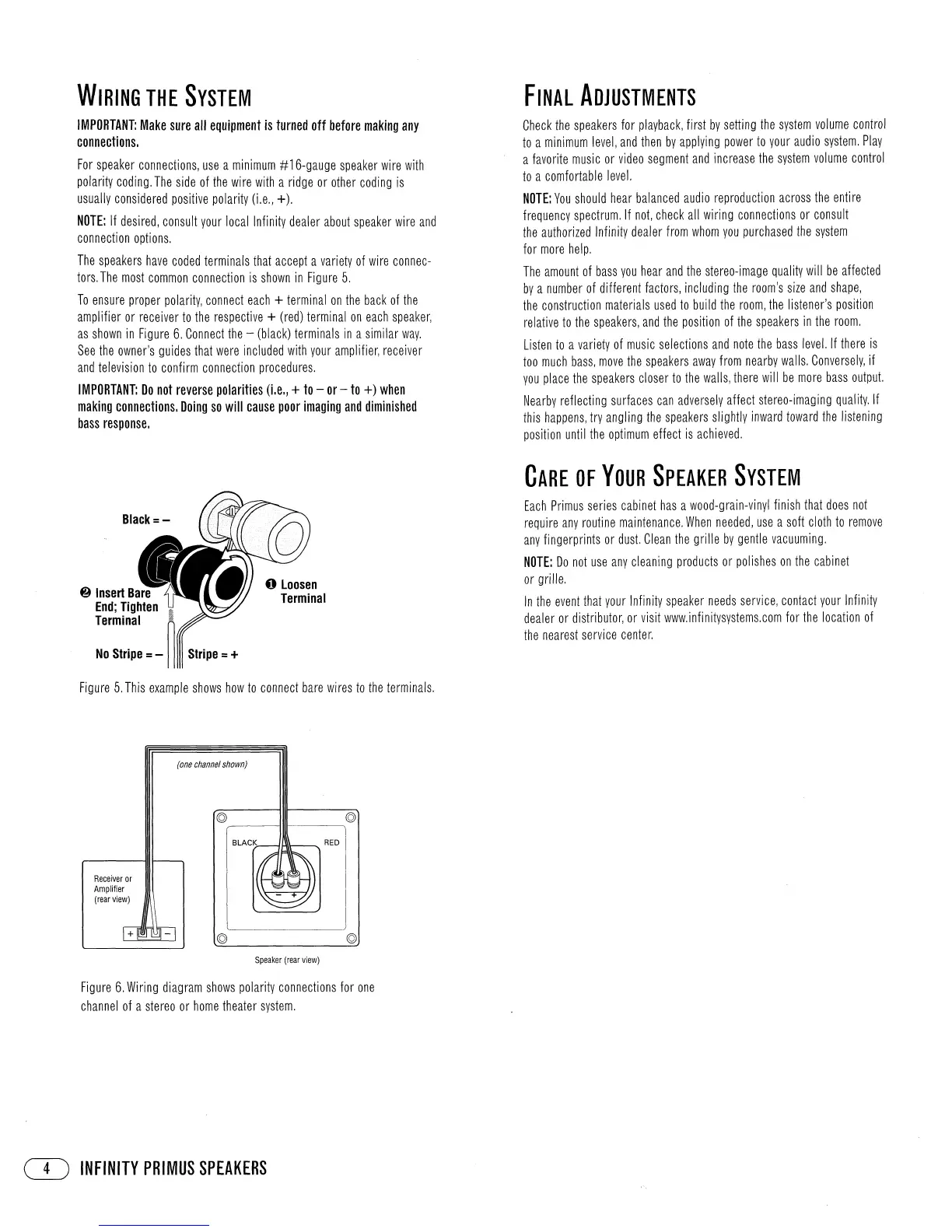 Infinity Primus P142 - Wiring the System; Final Adjustments