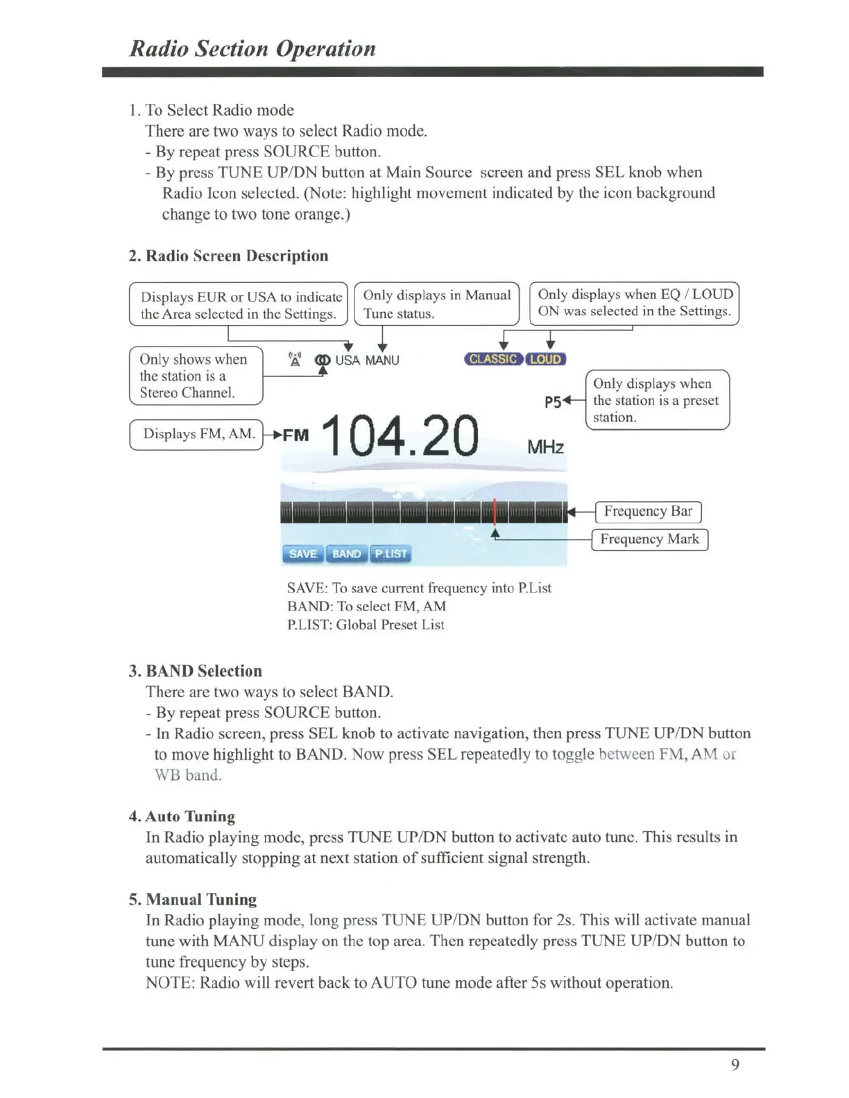 2. Radio Screen Description