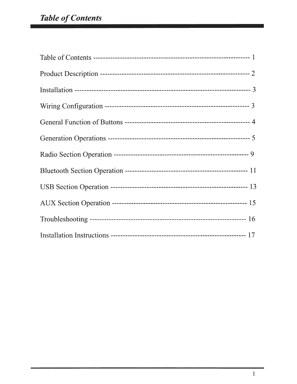Bluetooth Section Operation ---------------------------------------------------