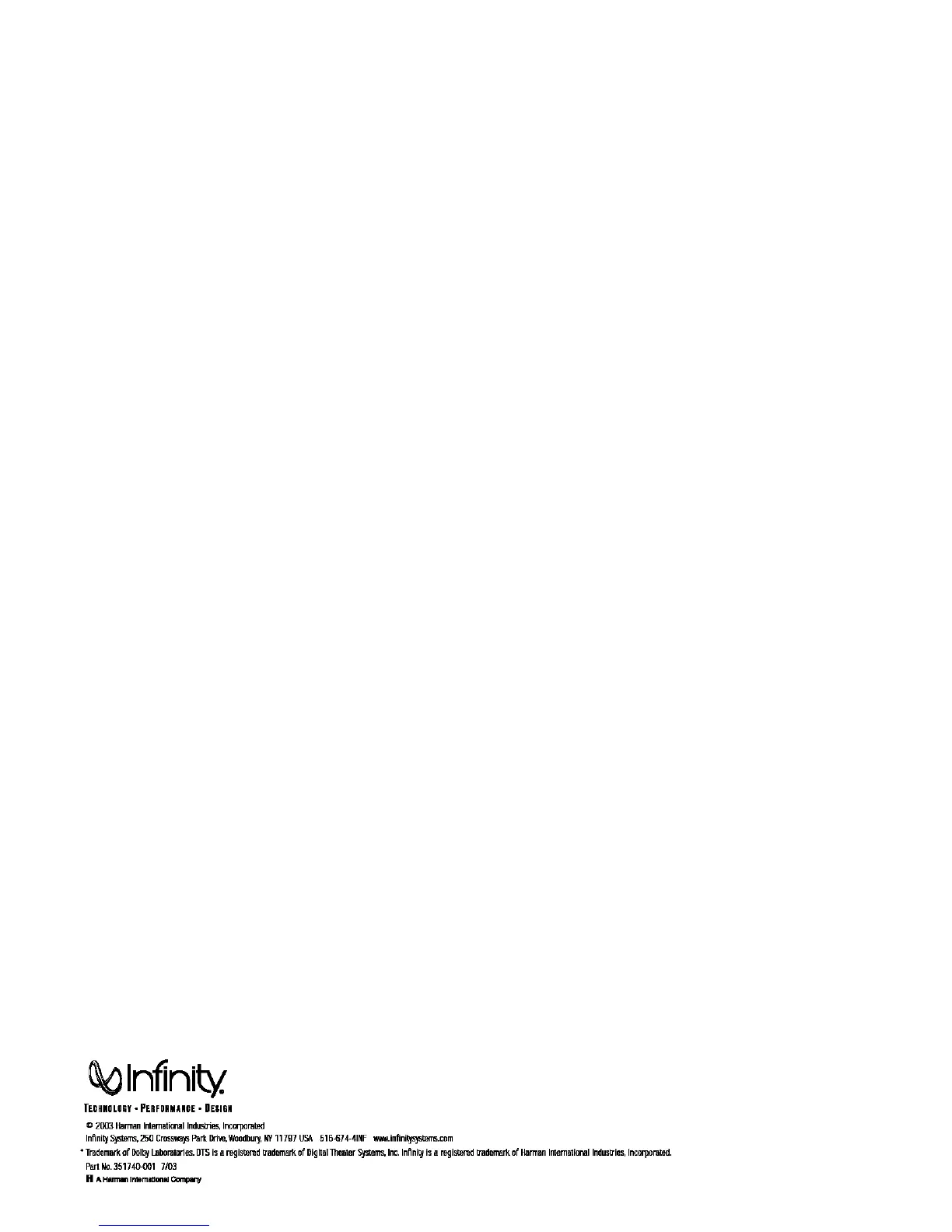 • Trademarkof 0_11_Laborat_e_.DTSisa registe_db'ademarkof Di9ital]heater Syster_ Inc.Infini_ is a regis_d _dernari_ of Haman InternationalIndu_ies_ Ir_._rated.