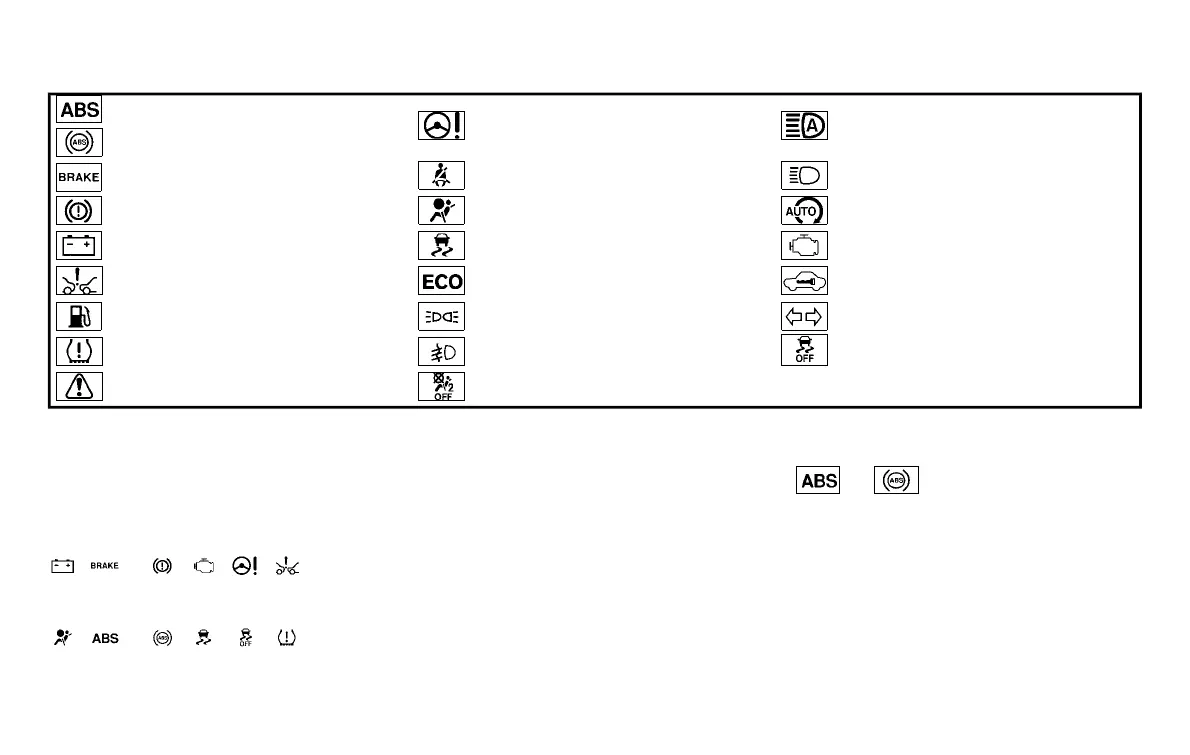 Charge warning light Vehicle Dynamic Control (VDC) warning light Malfunction Indicator Light (MIL)