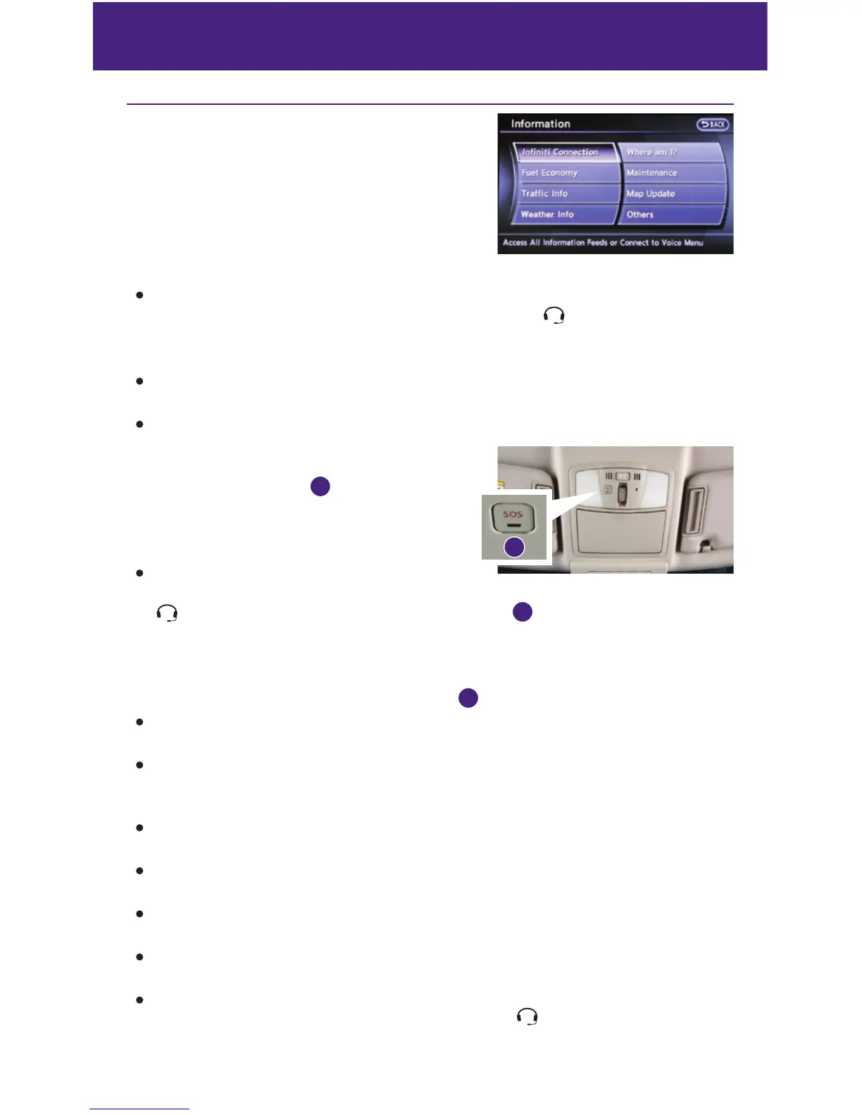 Assistance can be accessed by touching the INFINITI Connection key on the Info menu, the