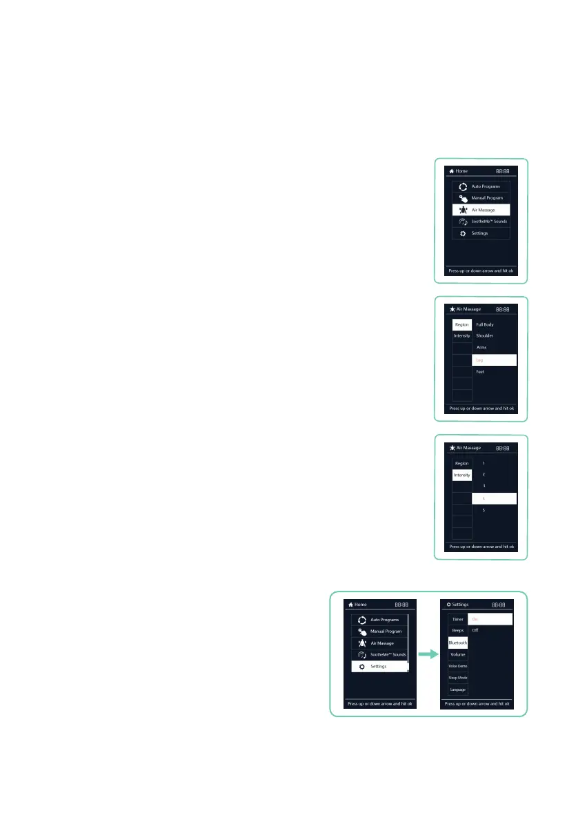button to select your desired airbag intensity: 1, 2, 3, 4, 5. Press OK
