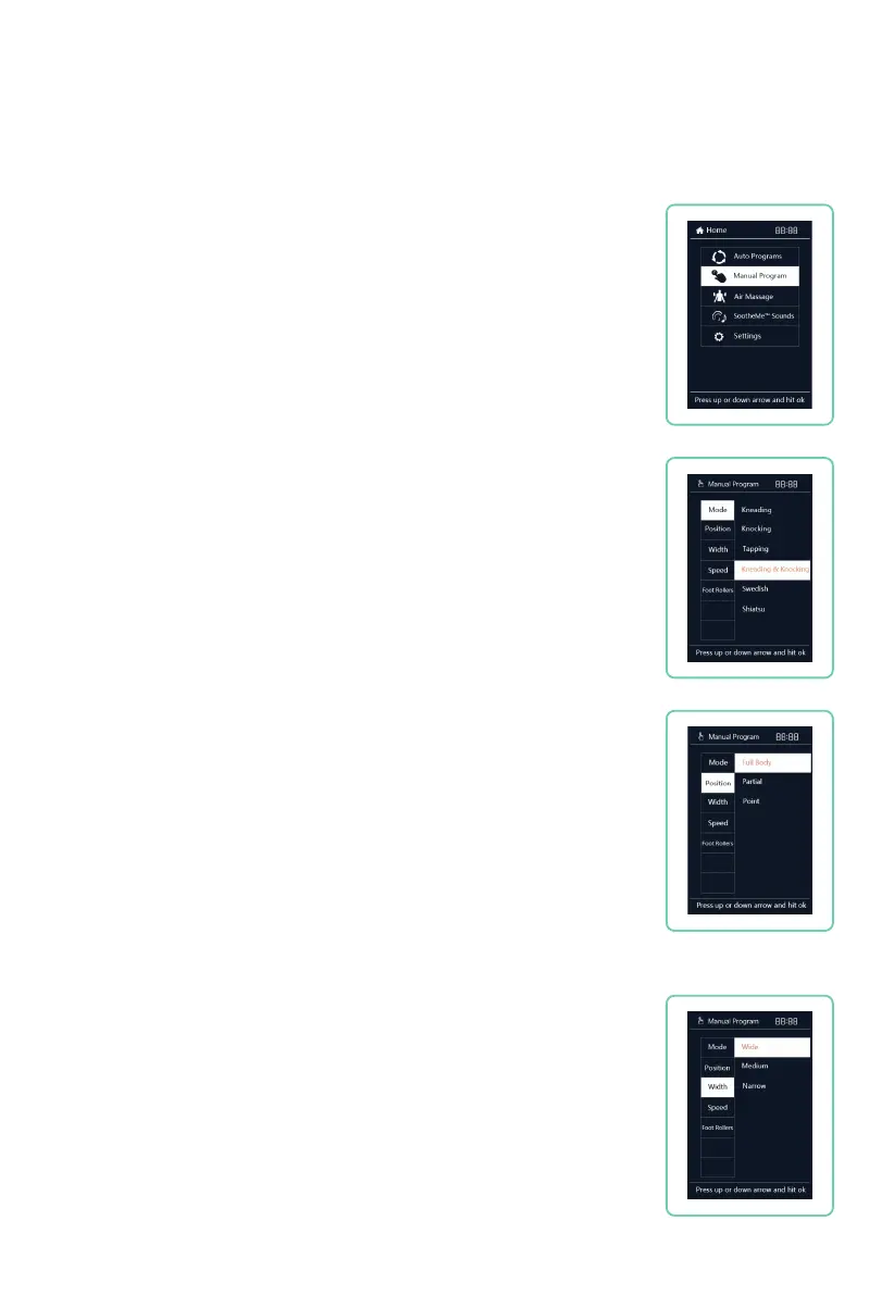 Kneading & Knocking, Swedish, or Shiatsu. Press OK button to