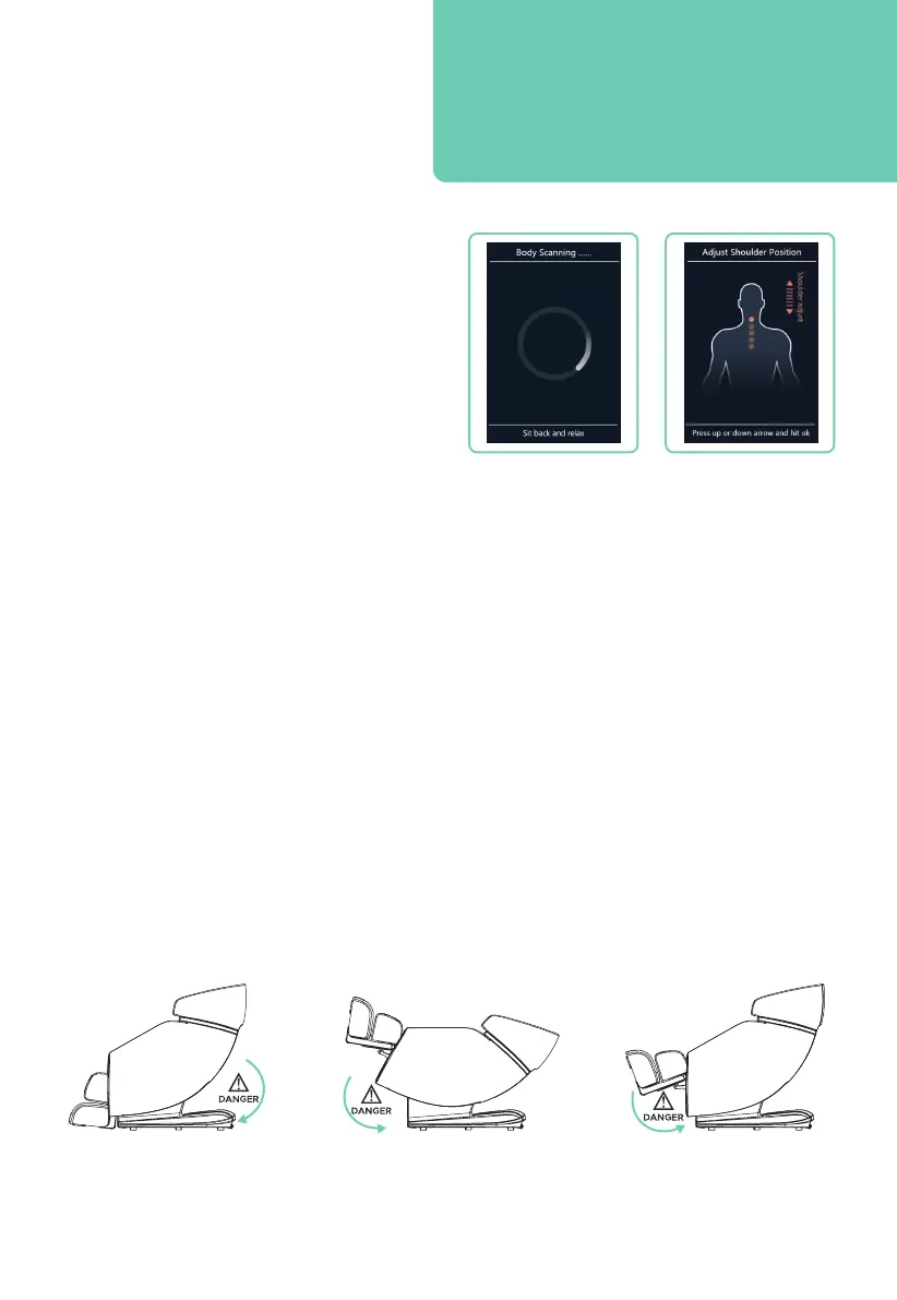 button to return chair to upright position. See next page for detailed hazard warnings.