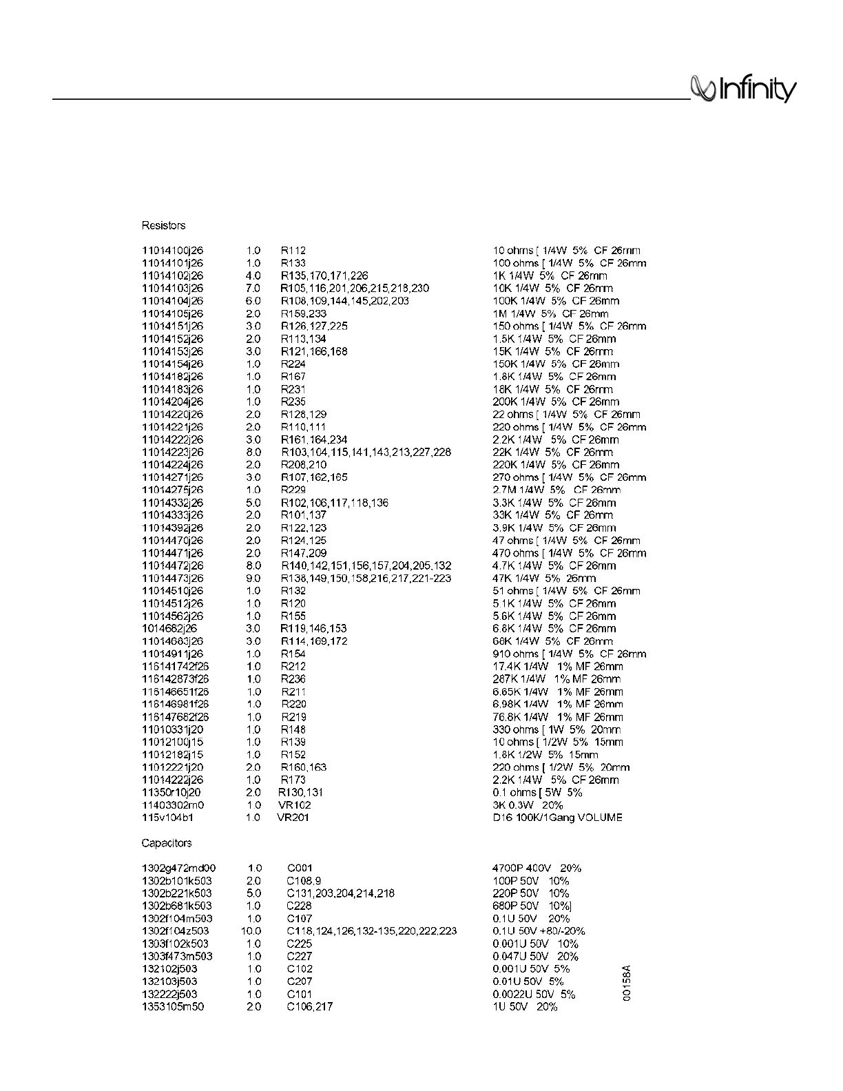Infinity RS-10 - Electronic Parts List