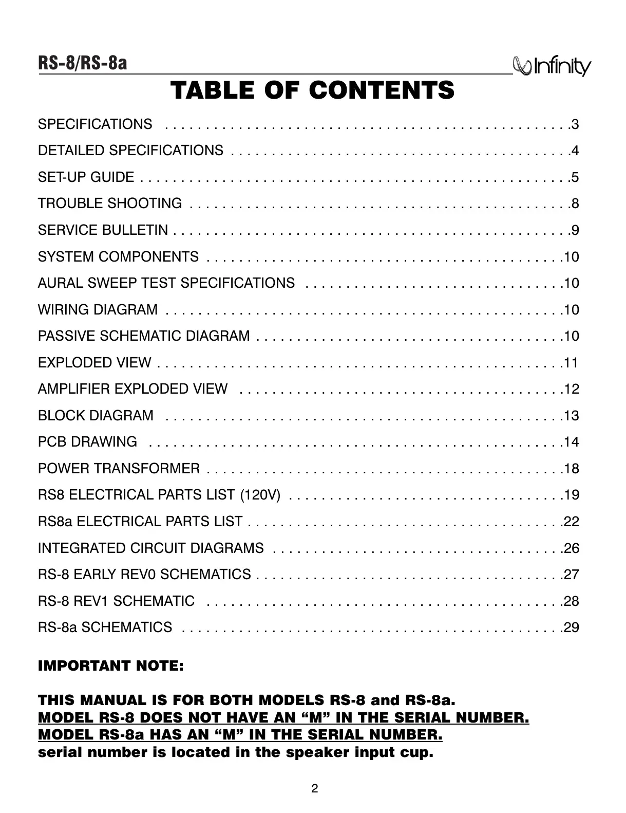 THIS MANUAL IS FOR BOTH MODELS RS-8 and RS-8a.