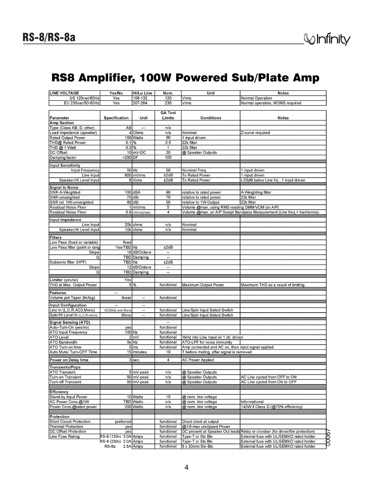 RS8 Amplifier, 100W Powered Sub/Plate Amp
