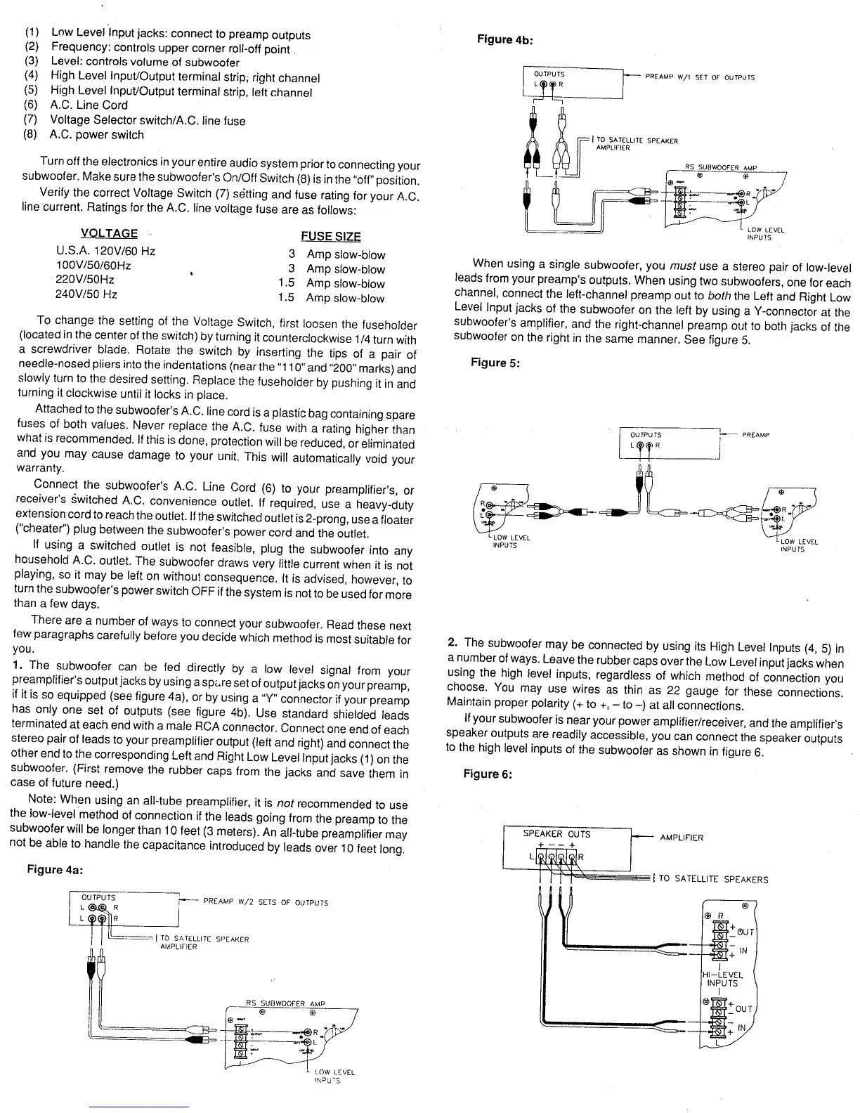 Infinity RS Series - Controls, Jacks, and Connections; Component Identification; Voltage Selector and Fuse; AC Power Connection