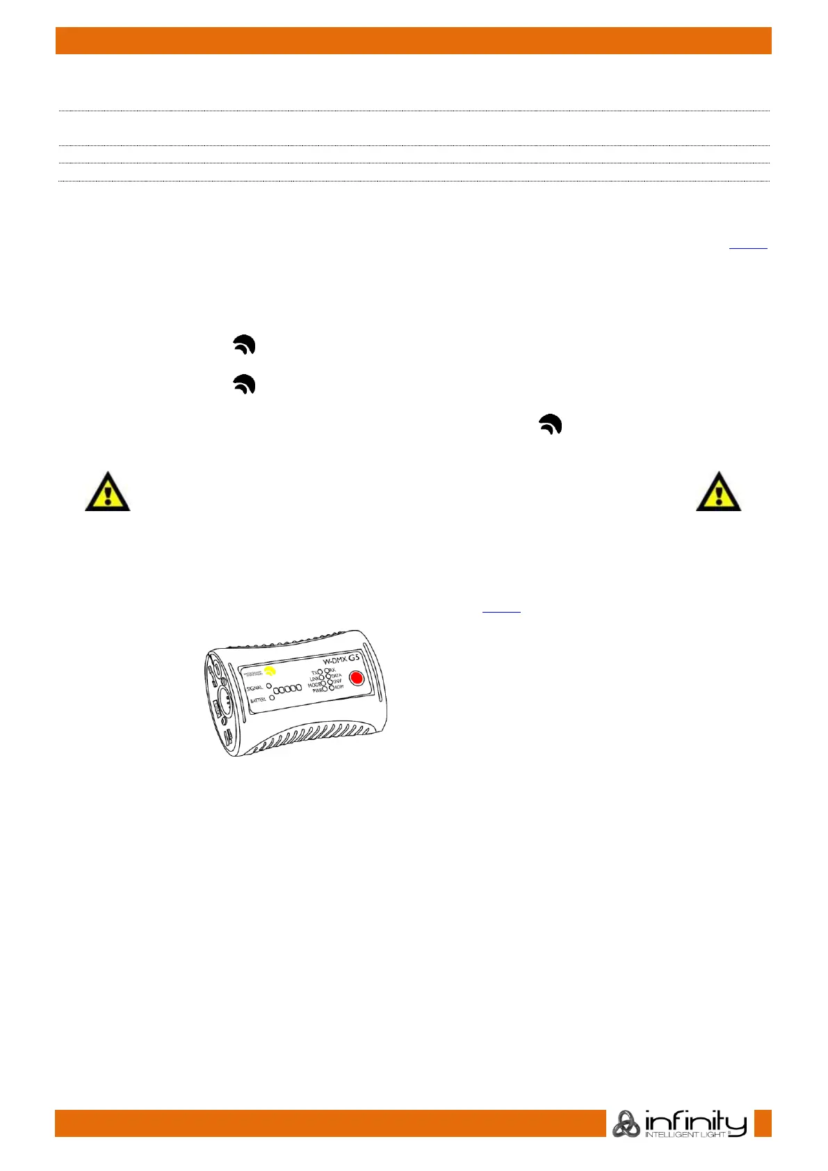 The Infinity cannot receive a wireless DMX signal and a DMX cable signal