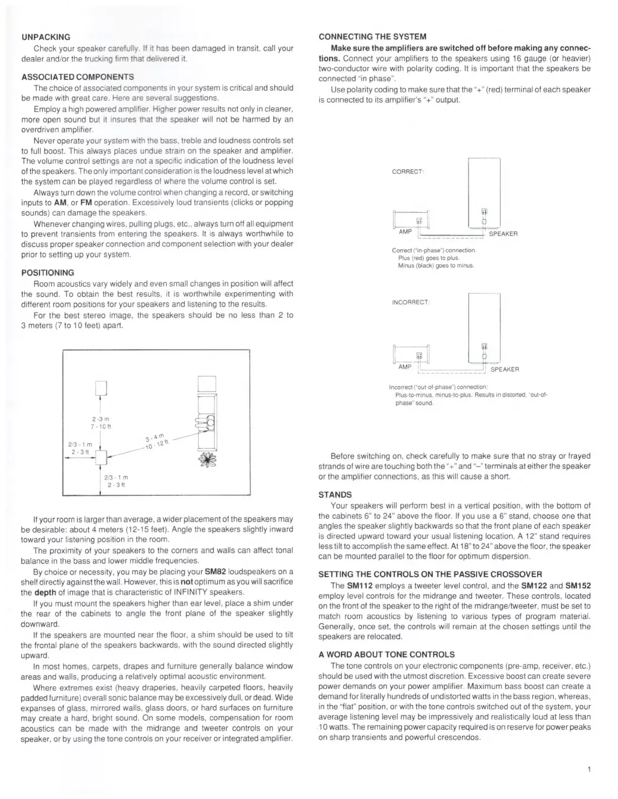Infinity SM 152 - Unpacking and Associated Components; Unpacking Your Speakers; Associated Components Guidance; Speaker Positioning and Setup
