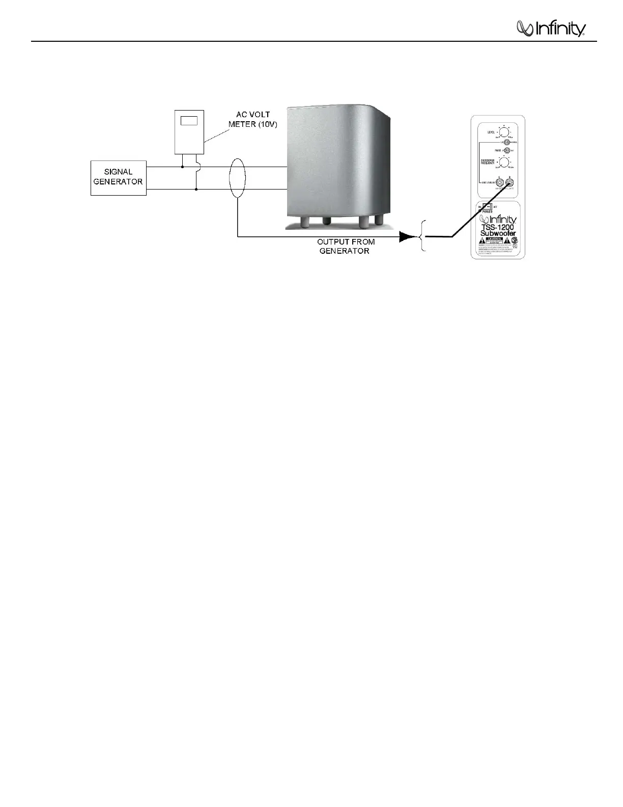 amplifier fed by a signal generator. Turn on generator and adjust so that speaker level output is 5.0V.