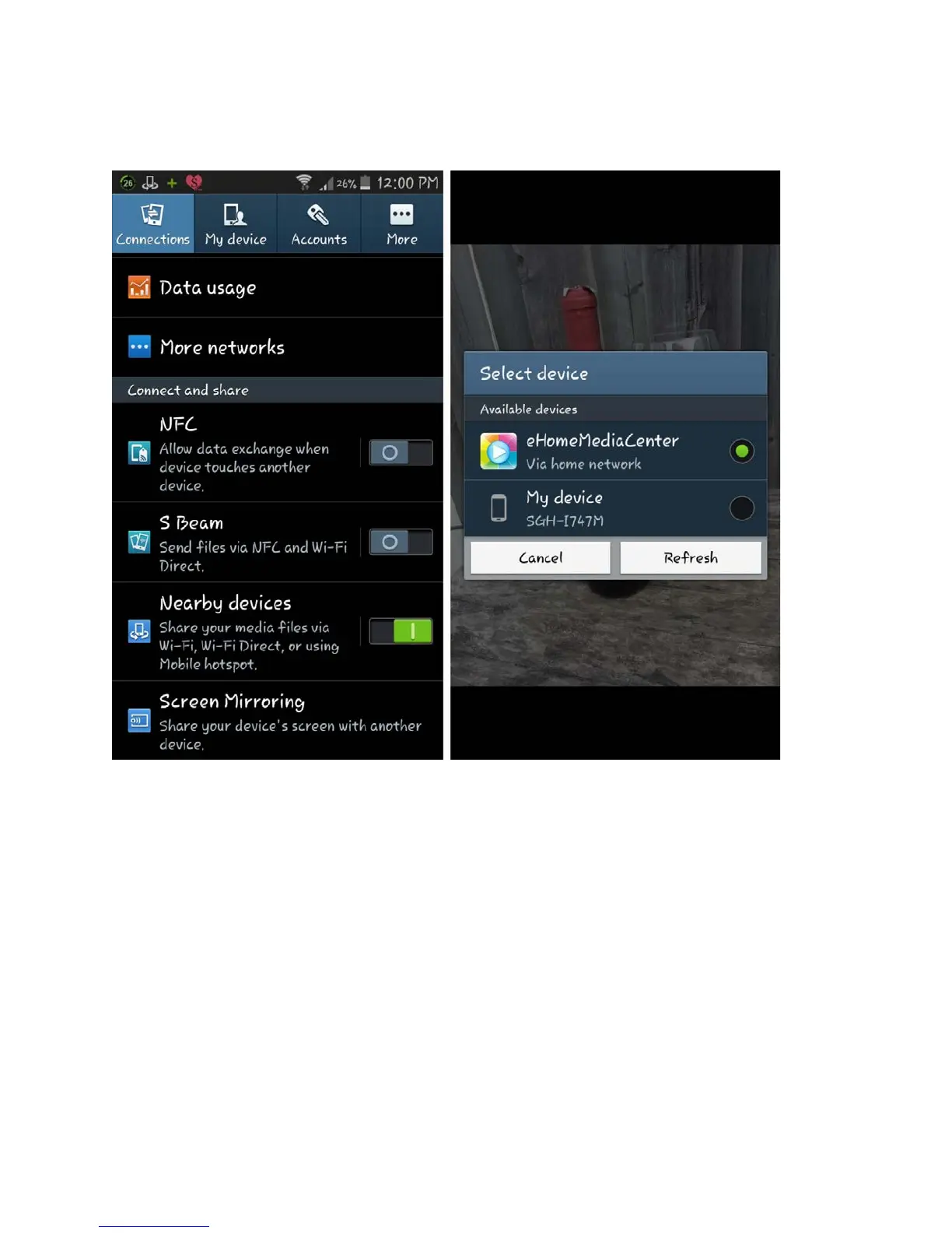 Android users by choosing the eHomeMediaCenter and enabling nearby devices, you