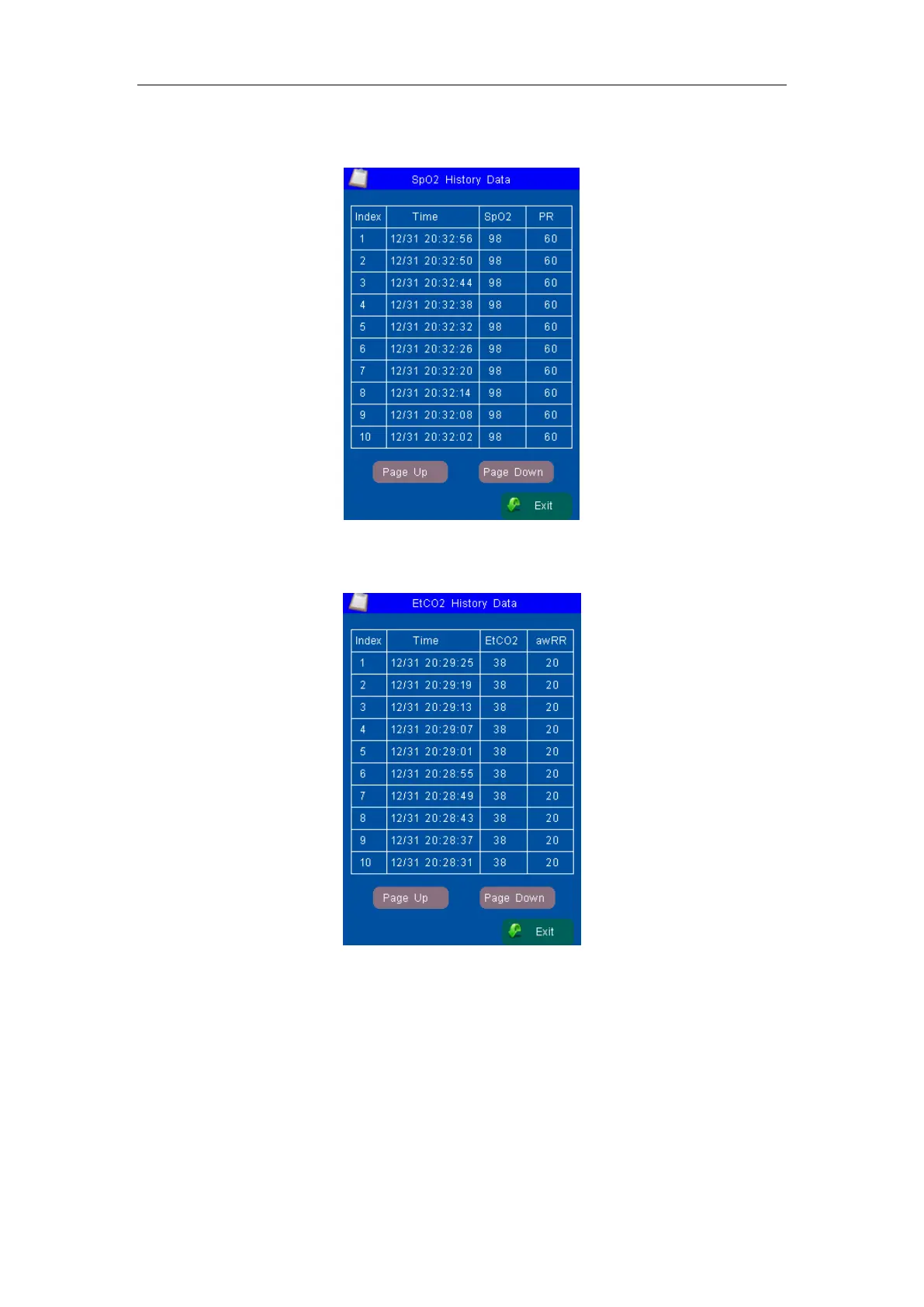 Infinium CLEO - Figure 18: Tabular Trend for Spo; Figure 19: Tabular Trend for Etco