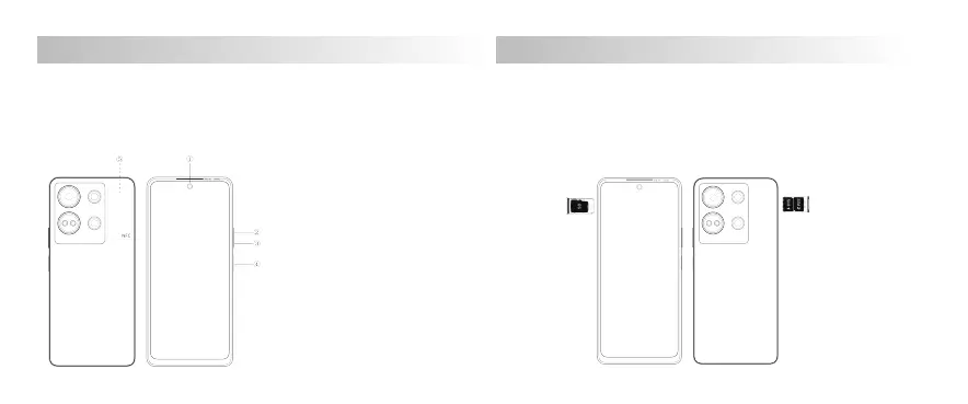 5.Reportez-vous à l’image suivante pour l’installation de la carte SIM/SD.