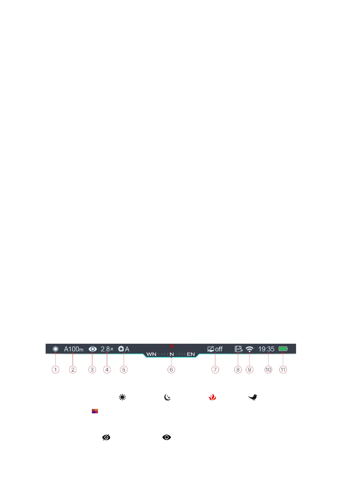 1. Current image mode ( :White Hot; :Black Hot; :Red Hot; : Target
