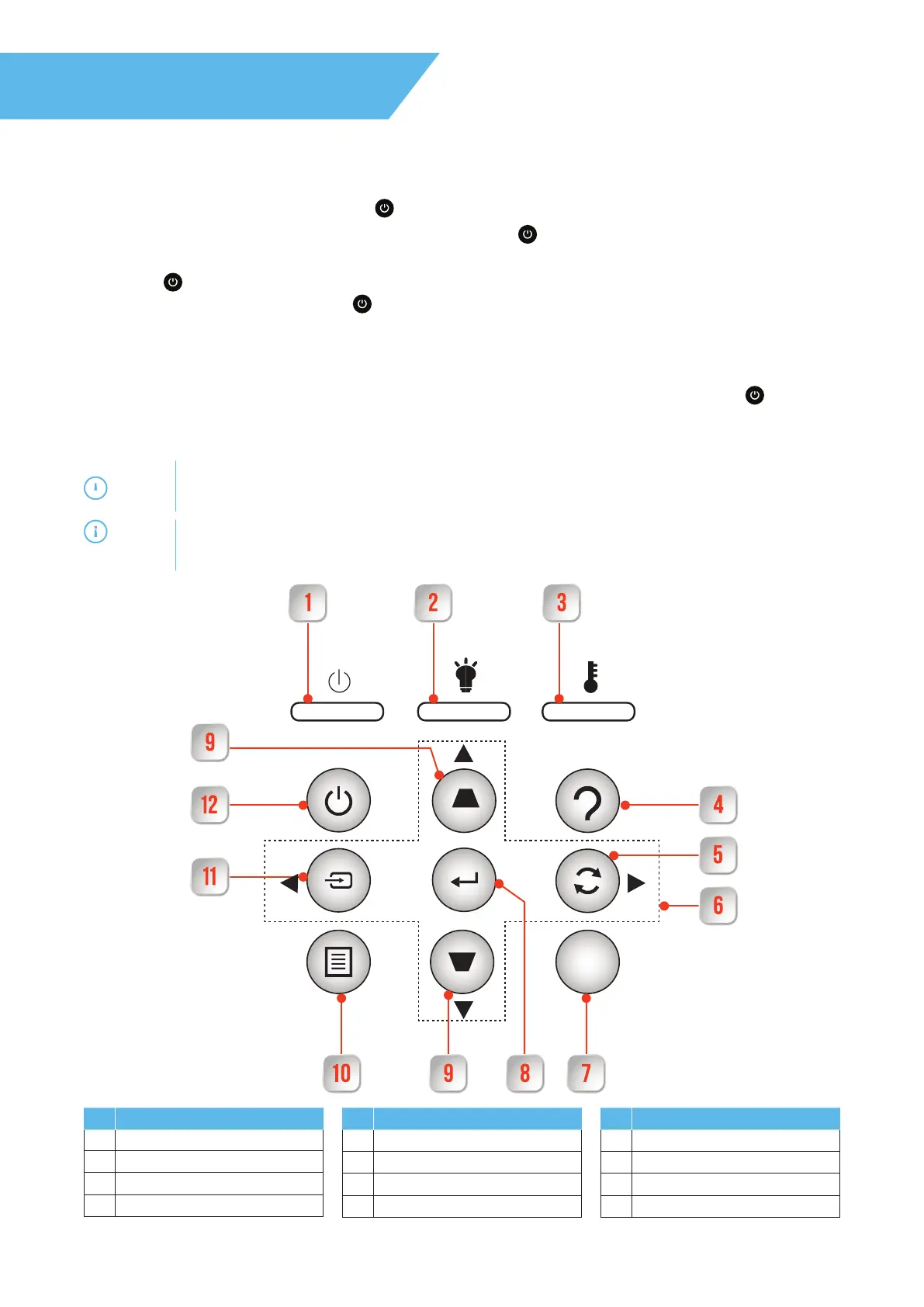 be turned off. When you press the button for the second time, the projector will turn off.