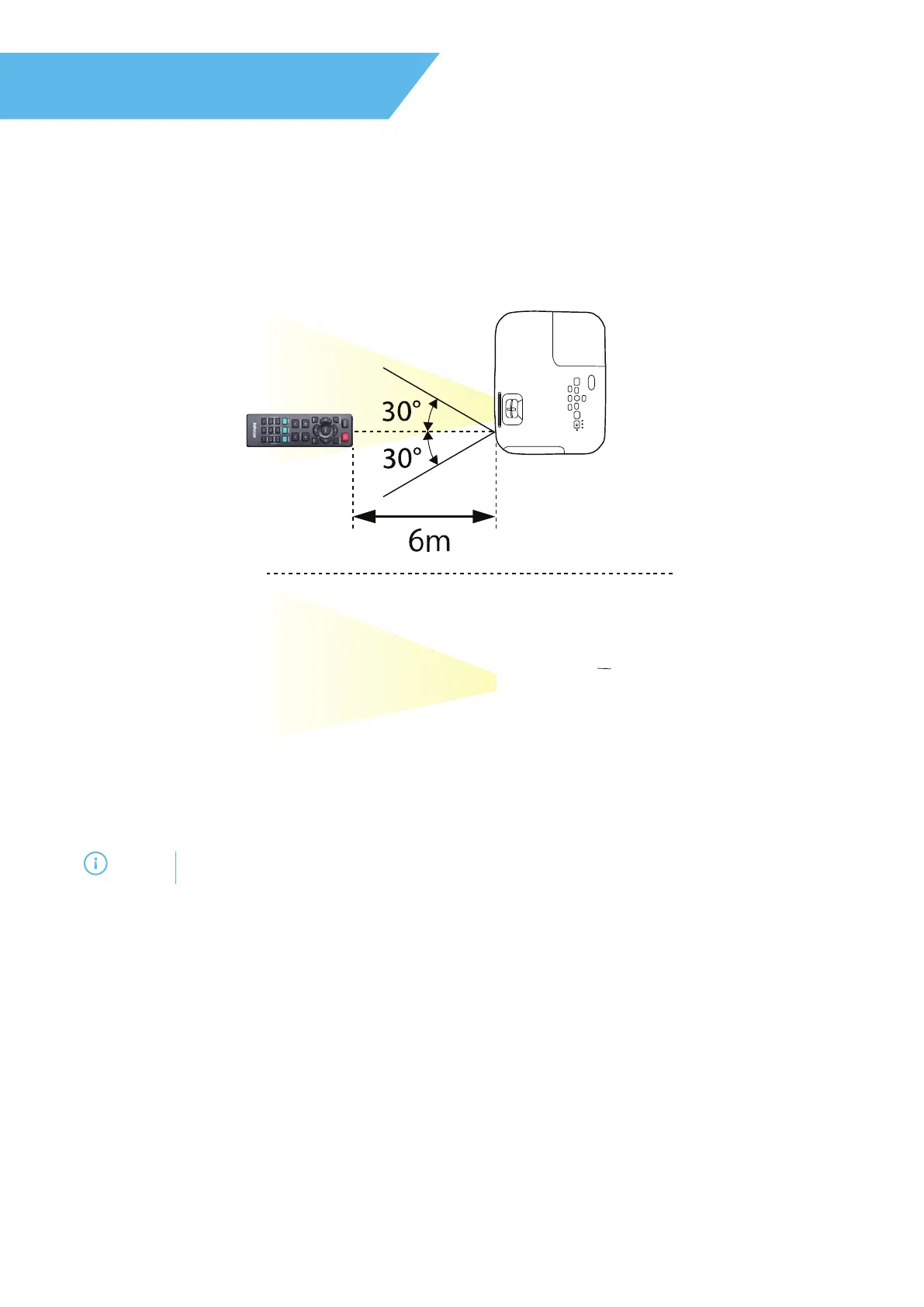 within 30 degrees perpendicular to the projector’s top IR remote control sensor to function correctly. The distance