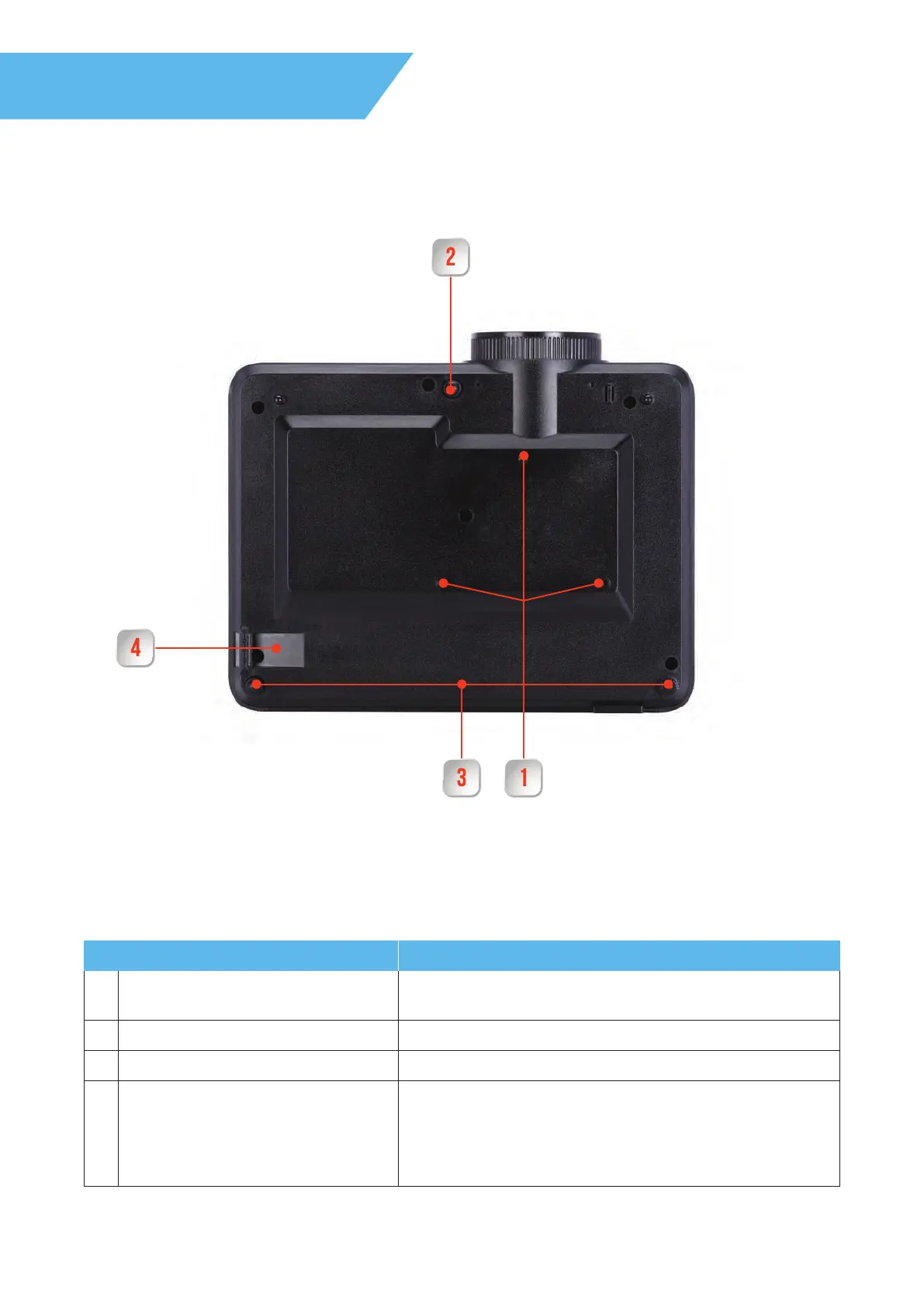 1 Mounting points for optional ceiling mount Attach the optional ceiling mount when suspending the projector