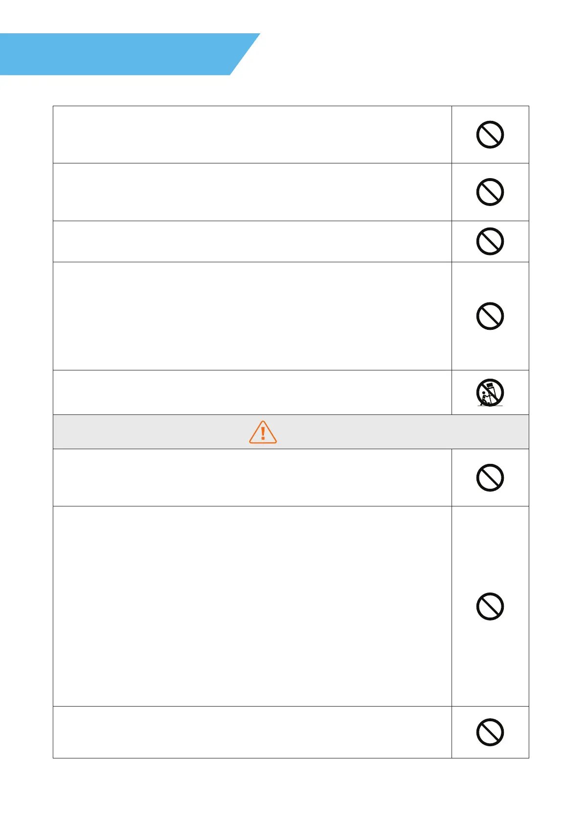 Do not install the projector in a location that is not strong enough to bear its weight, or on an