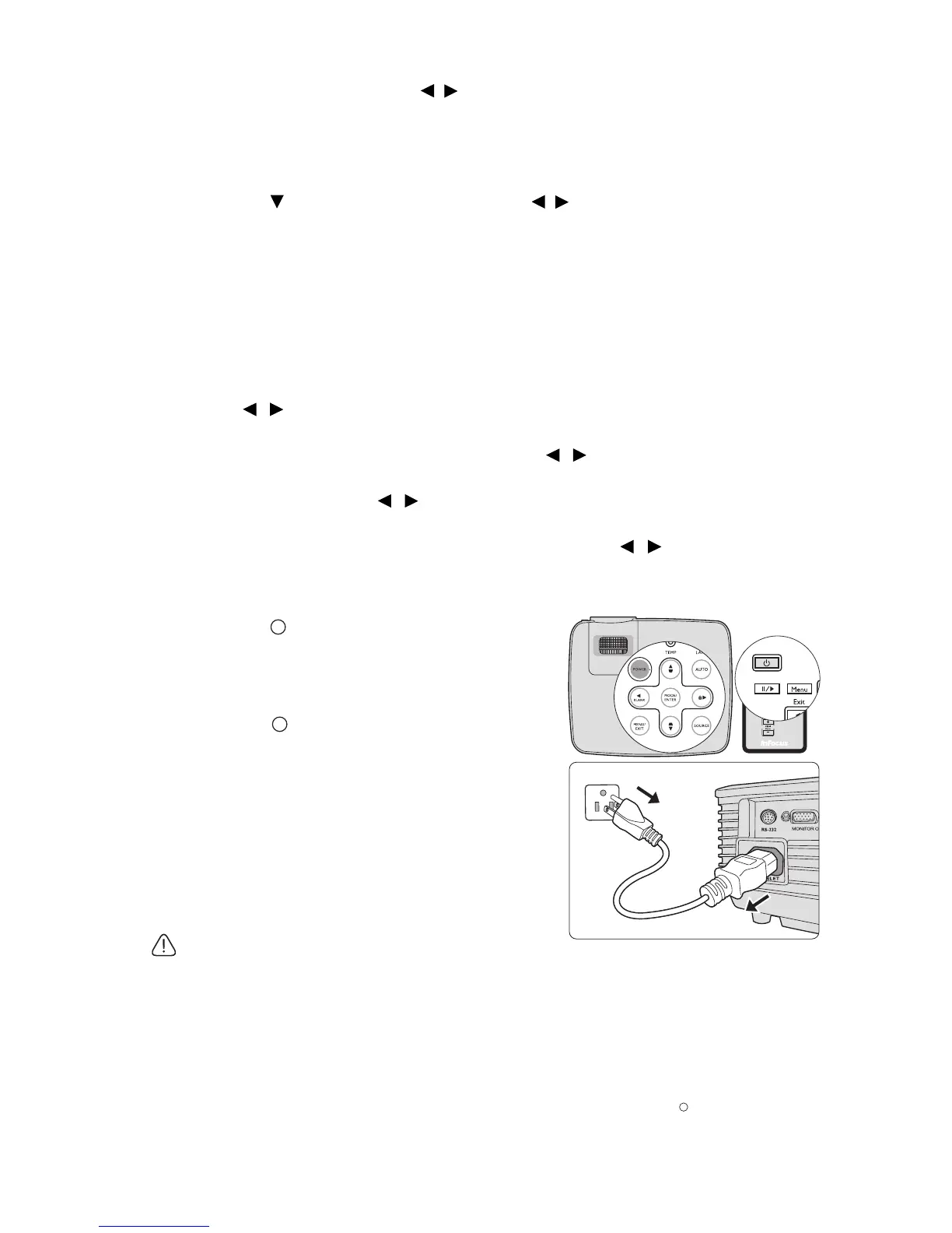 • Do not unplug the power cord before the projector shutdown sequence is complete or