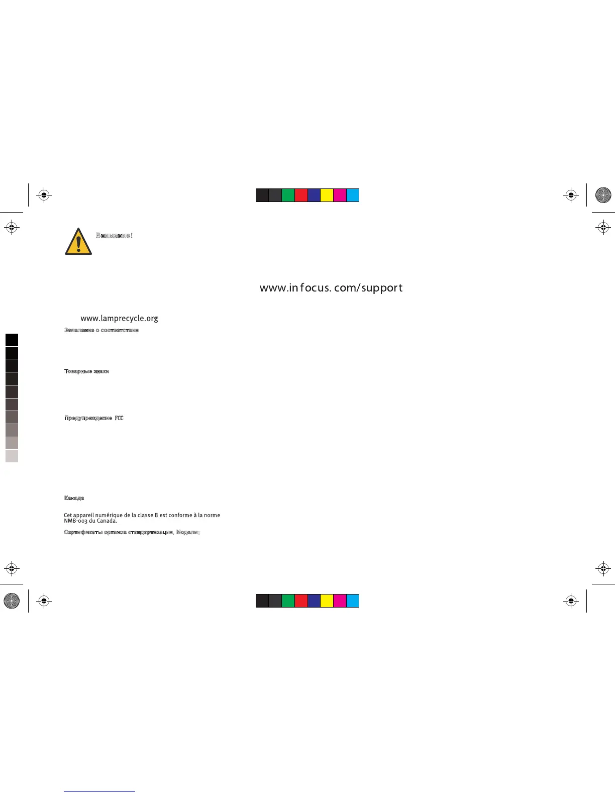 Изменения или модификации данного оборудования, явно не утвержденные компанией InFocus Corp., могут повлечь потерю пользователем