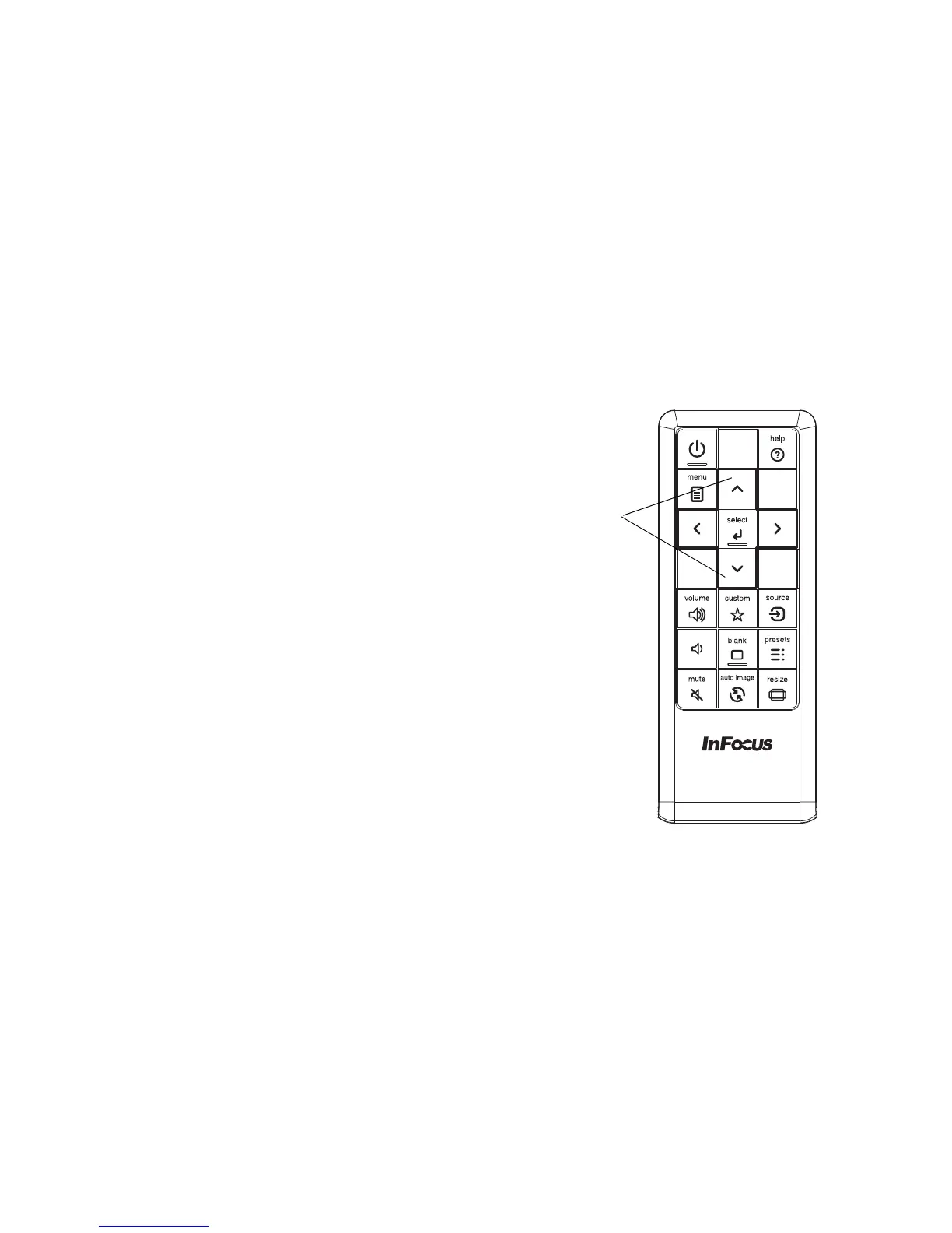 Press the remote’s Menu button to open the projector’s menu system. Use the arrow