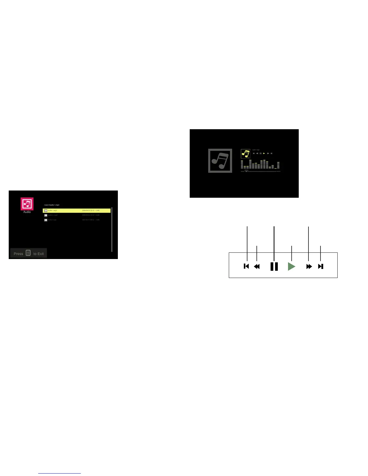 o pause/start the audiovisual file: Press the Select key to pause and start the